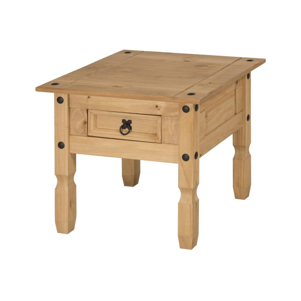Mercers Furniture is happy to offer this Corona 1 Drawer Lamp Table, expertly crafted from solid pine and hand waxed to preserve as well as enhance the grain. It offers outstanding value for money that would be a welcome addition to any home. Includes 1 drawer for extra storage the item is finished off with black metal fittings which give a distinctive Mexican styling and offers that warm rustic country charm. The item has a hardboard drawer base, its delivered flat packed for easy home assembly with step-by-step instructions.
