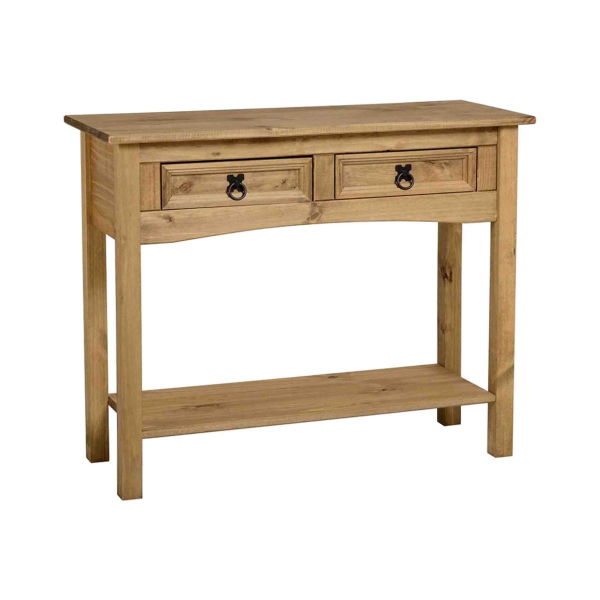 The Seconique Corona 2 Drawer Console Table with Shelf boasts a beautiful distressed waxed pine finish that will bring a whole new look to your home. The attractive design with metal drop handles and the rich colour of the wood make it a superb piece of furniture to look at that is also highly functional. With two spacious drawers, there’s plenty of room to store your belongings. Please note, unfortunately we cannot deliver this item to the Channel Islands.