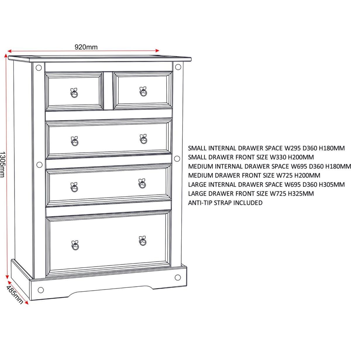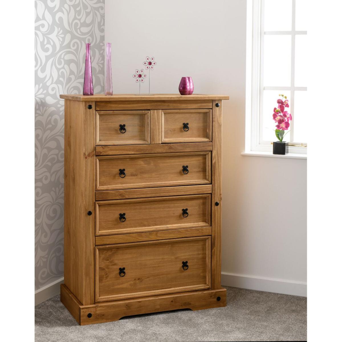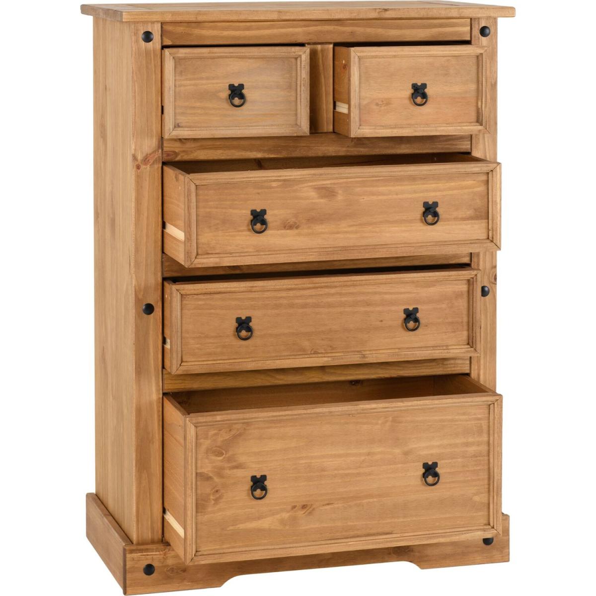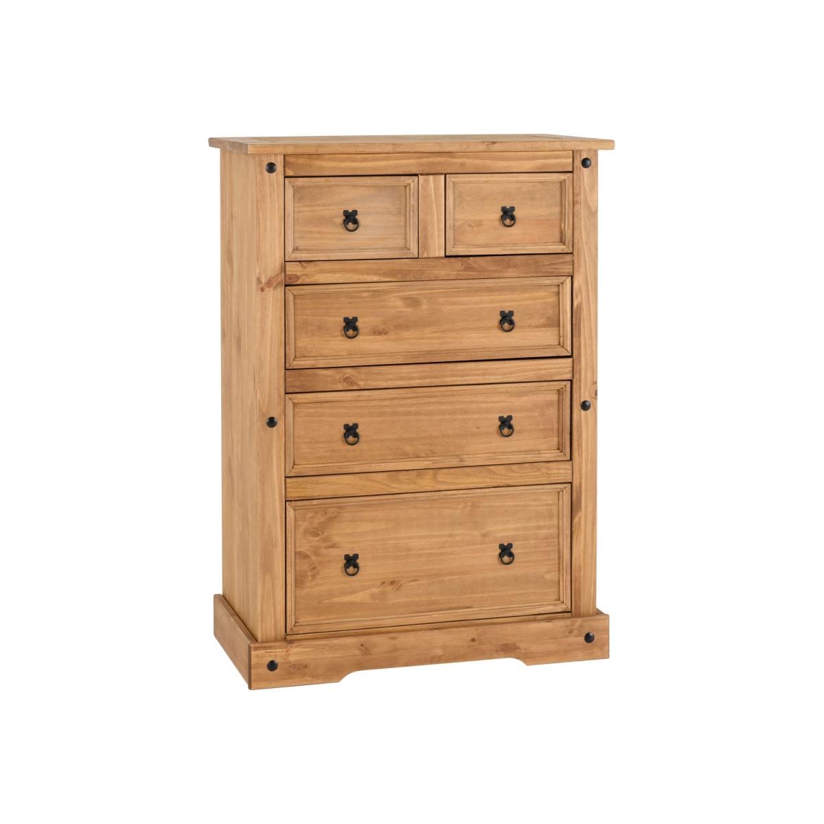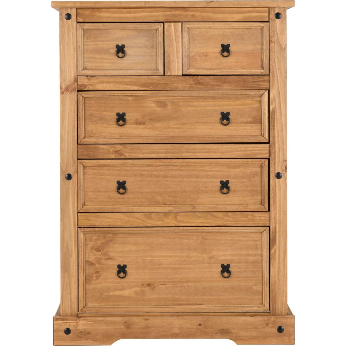 The Corona 2 Over 3 Drawer Chest boasts ample storage for your bedroom. This beautiful distressed waxed pine chest will bring a whole new look to your home. The attractive design with metal drop handles and the rich colour of the wood make it a superb piece of furniture to look at that is also highly functional. With five spacious drawers, there is plenty of room to store your belongings. UK Mainland delivery only, between 9am - 9pm (weekdays) the courier will contact you on the day of delivery to offer a time slot. This takes place within 10 working days (Ground floor only). Please also ensure that we have a note of your up-to-date address and contact information, including daytime phone number and email address to be passed to the couriers.