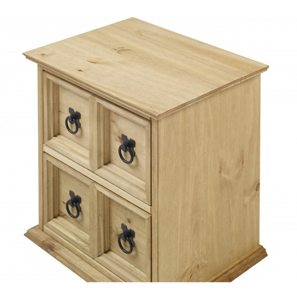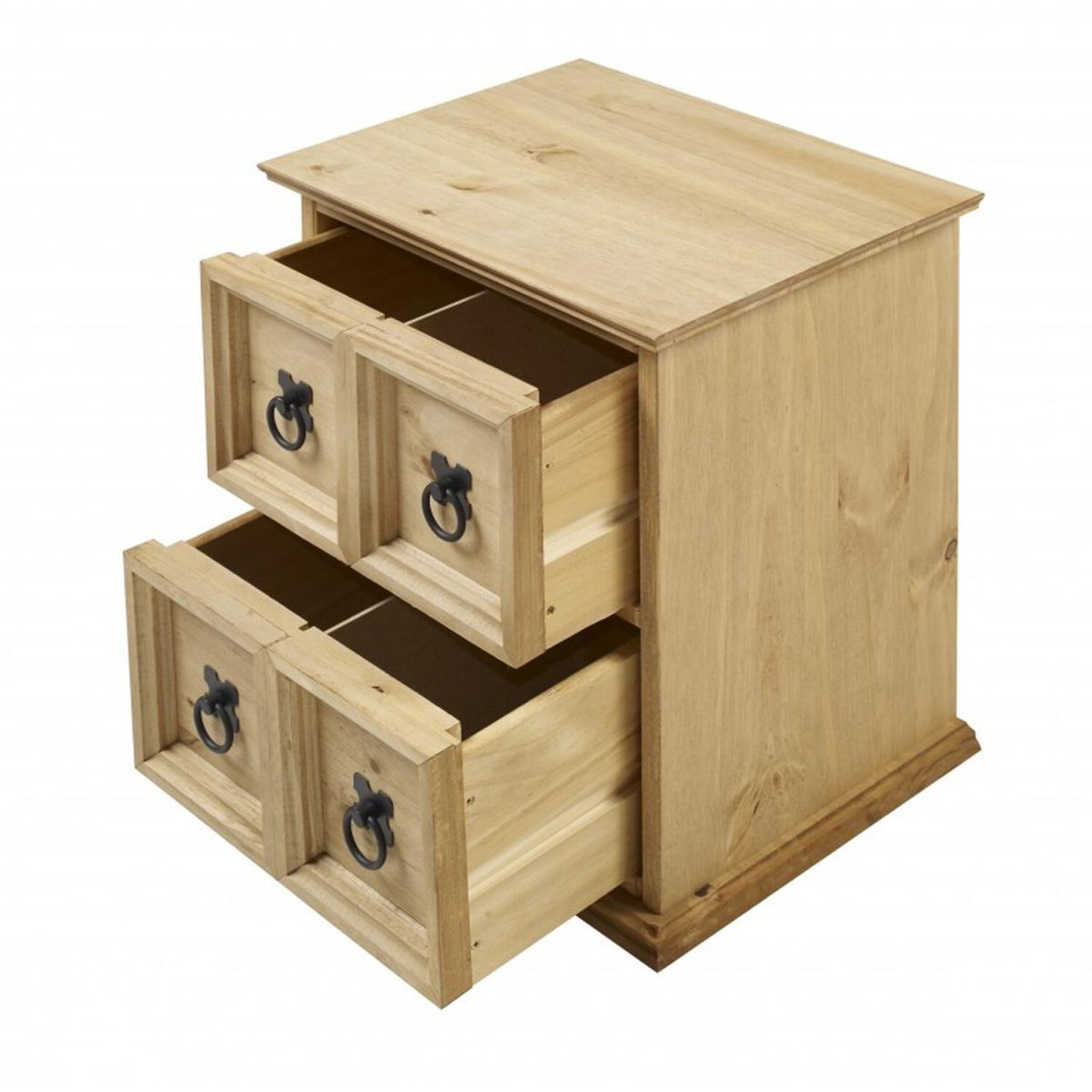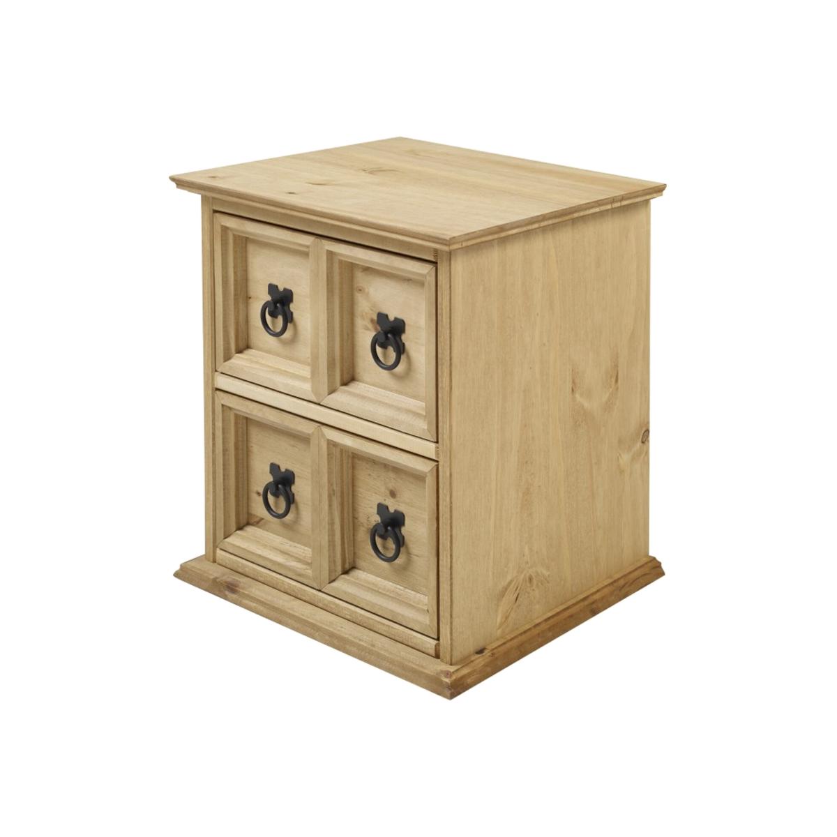 Mercers Furniture is happy to offer this Corona 2x2 CD Unit, the item is expertly crafted from solid pine and hand waxed to preserve as well as enhance the grain. It offers outstanding value for money with 2 drawers that would be a welcome addition to any room. It is finished off with black metal fittings which give the item its distinctive Mexican styling and offers that warm rustic country charm. The item has hardboard backs and drawer bases, its delivered flat packed for easy home assembly with step-by-step instructions. Height - 44cm. Width - 38cm. Depth - 30cm