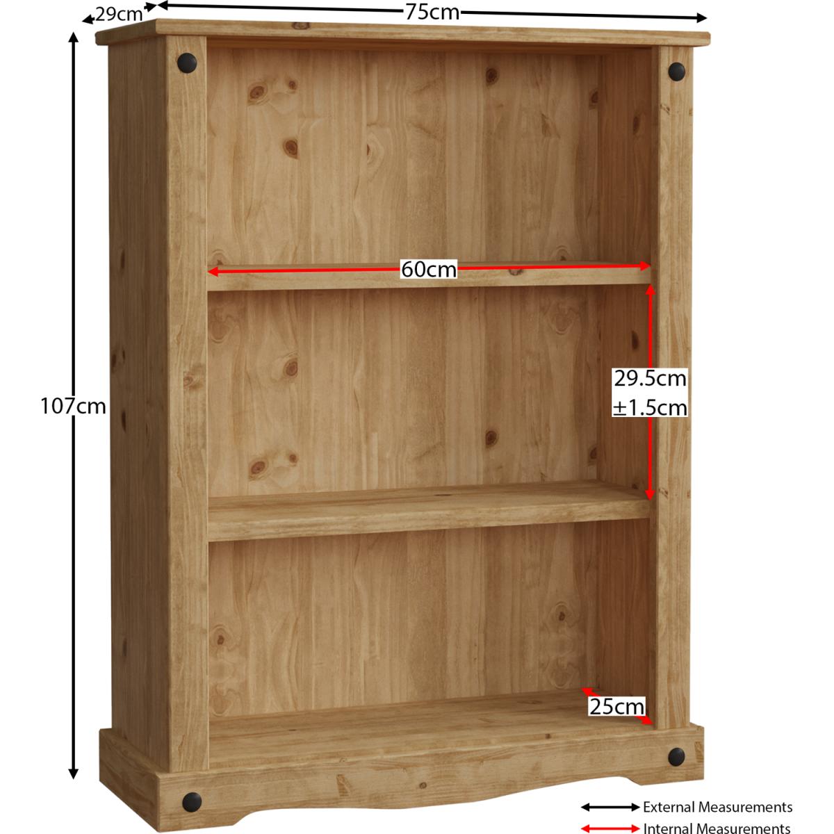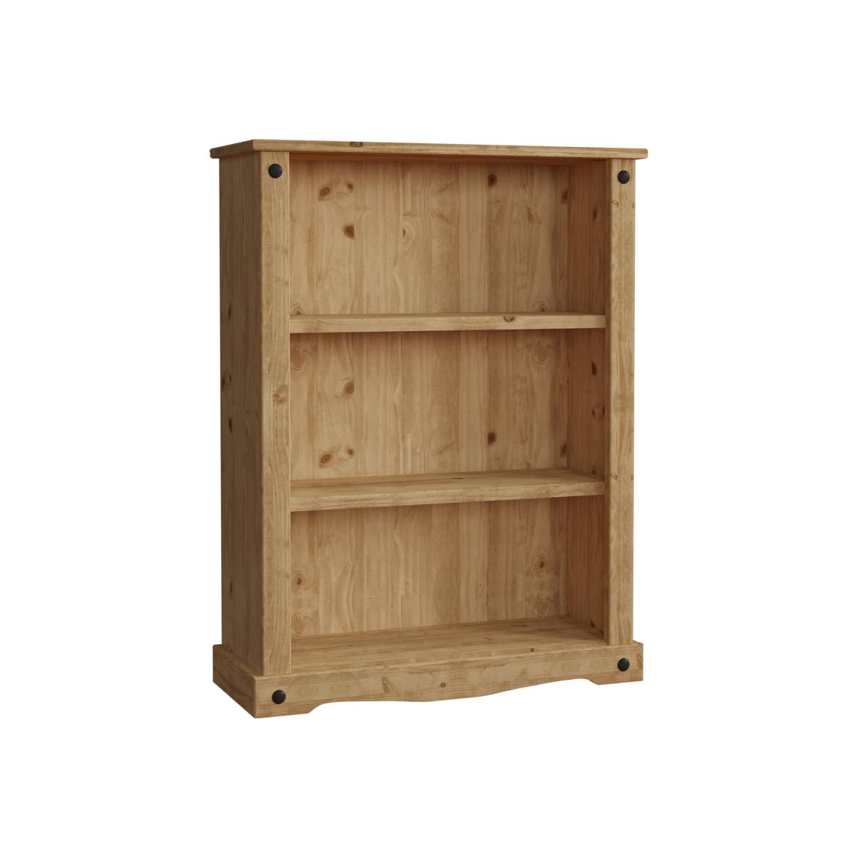This stunning and handy living room gem, the Corona Low Bookcase has two convenient storage shelves to give your favourite novels a permanent home in this solid pine bookcase! The generous and attractive design provides a plethora of space to organize your novels! Moreover, there is enough space on top for cute decorative items such as framed photos or plants. Bookcase features a curved plinth at the bottom and is complemented with black metal elements. The distressed wax finish not only protects and preserves the timbers, it also enhances the beauty of the wood grain. With its compact dimensions, this low bookcase will fit perfectly under a window or with a small recess.