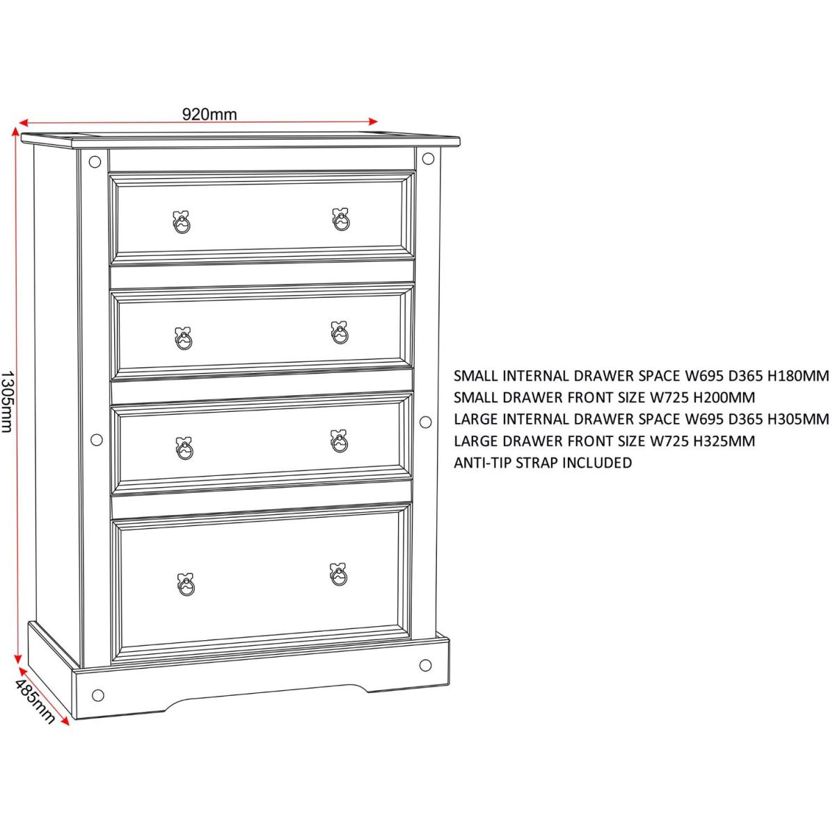 Featuring three small drawers and one large drawer with classy black metal detailing, This chest is crafted from solid pine and offers excellent value for money. Given a traditional and classic look to any bedroom. UK Mainland delivery only, between 9am - 9pm (weekdays) the courier will contact you on the day of delivery to offer a time slot. This takes place within 10 working days (Ground floor only). Please also ensure that we have a note of your up-to-date address and contact information, including daytime phone number and email address to be passed to the couriers.