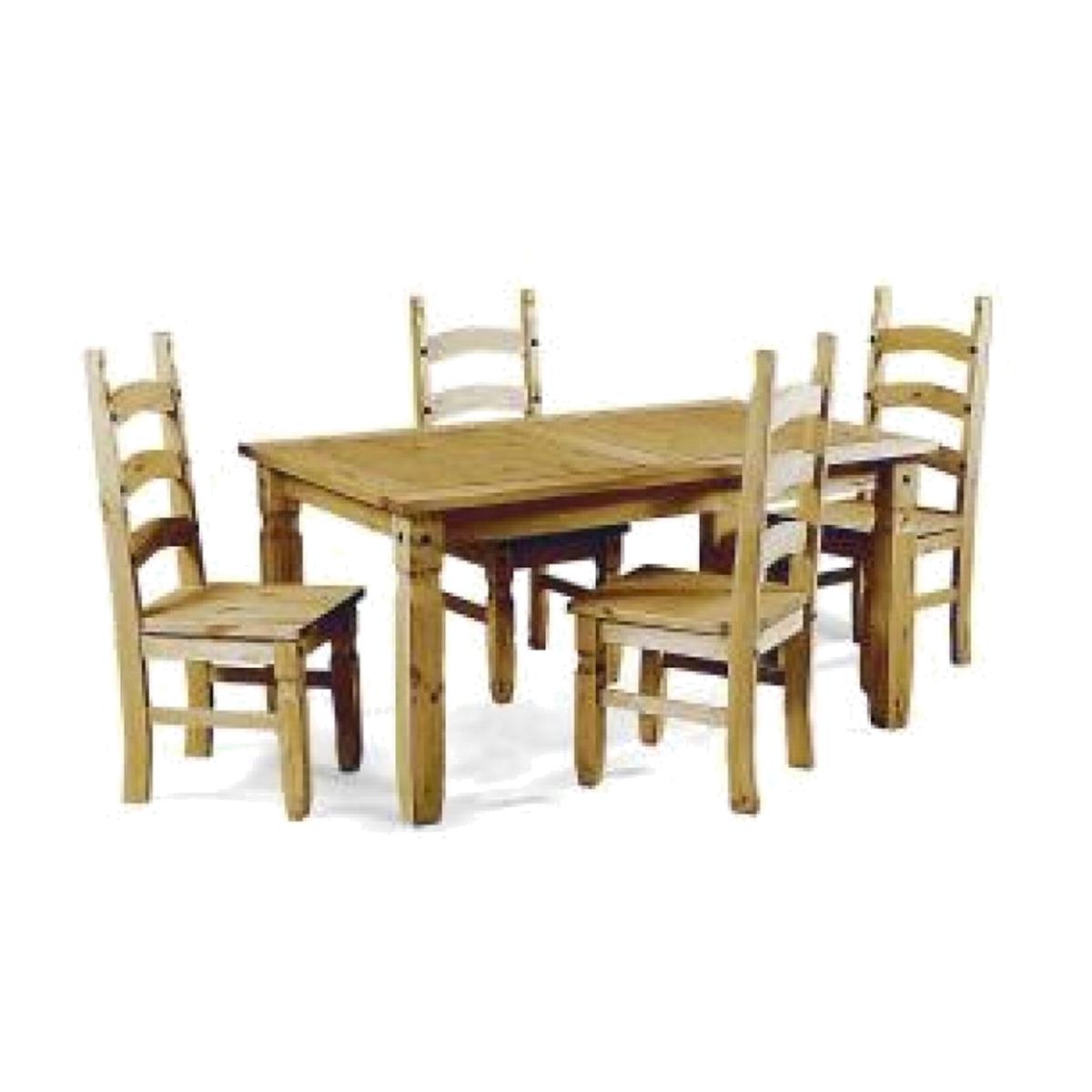 Mercers Furniture is happy to offer this Corona 5'0" Table 4 Chairs, expertly crafted from solid pine and hand waxed to preserve as well as enhance the grain. It offers outstanding value for money that would be a welcome addition to any home. The set is finished off with black metal fittings which give the dining set its distinctive Mexican styling and offers that warm rustic country charm. The item is supplied flat packed for easy home assembly with step-by-step instructions. Height - 76cm. Width - 152cm. Depth - 92cm