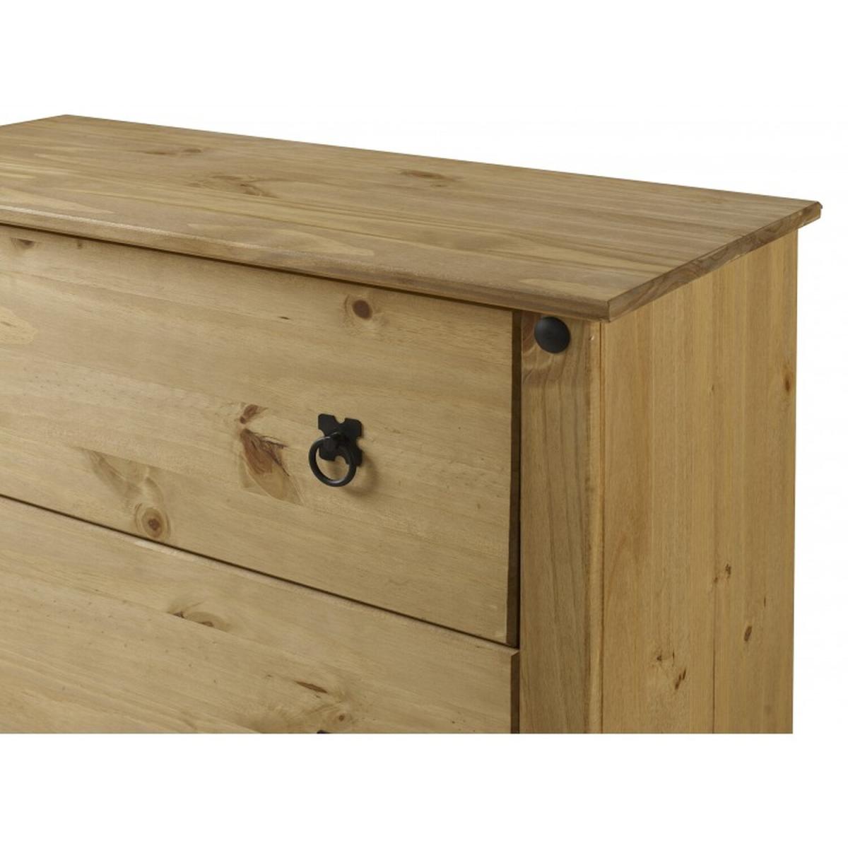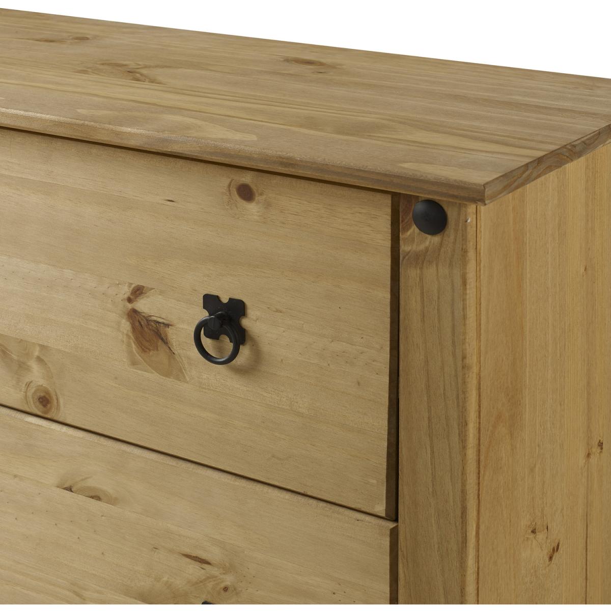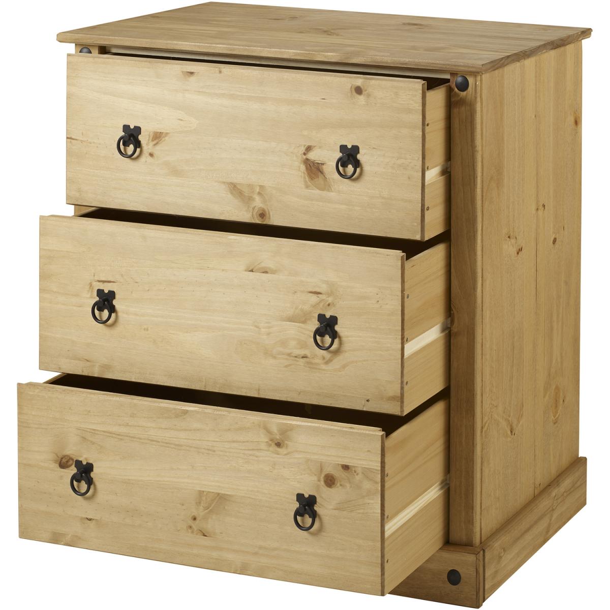 Mercers Furniture is happy to offer this Corona Budget Chest, the item is expertly crafted from solid pine and hand waxed to preserve as well as enhance the grain. It offers outstanding value for money with 3 drawers that would be a welcome addition to any bedroom. It is finished off with black metal fittings which give the item its distinctive Mexican styling and offers that warm rustic country charm. The item has hardboard backs and drawer bases, its delivered flat packed for easy home assembly with step-by-step instructions. Height - 85cm. Width - 83cm. Depth - 38cm