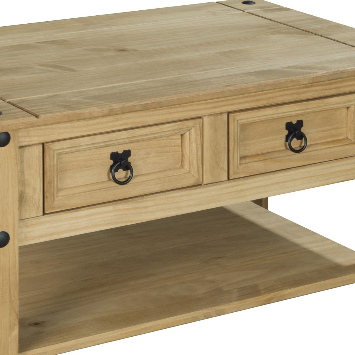 Corona Coffee Table 2 Drawer Mexican Solid Pine Wood Occasional - Waxed Pine
