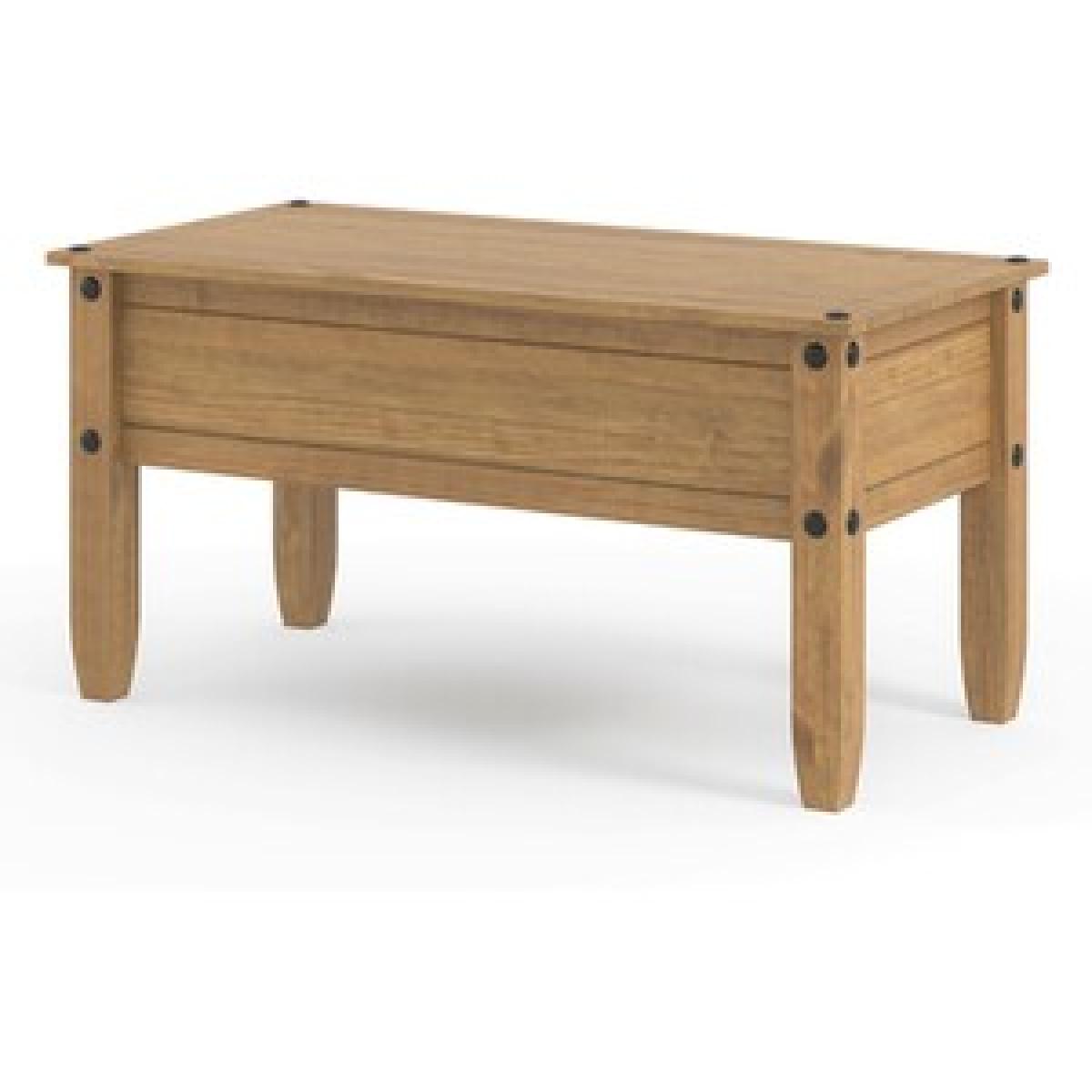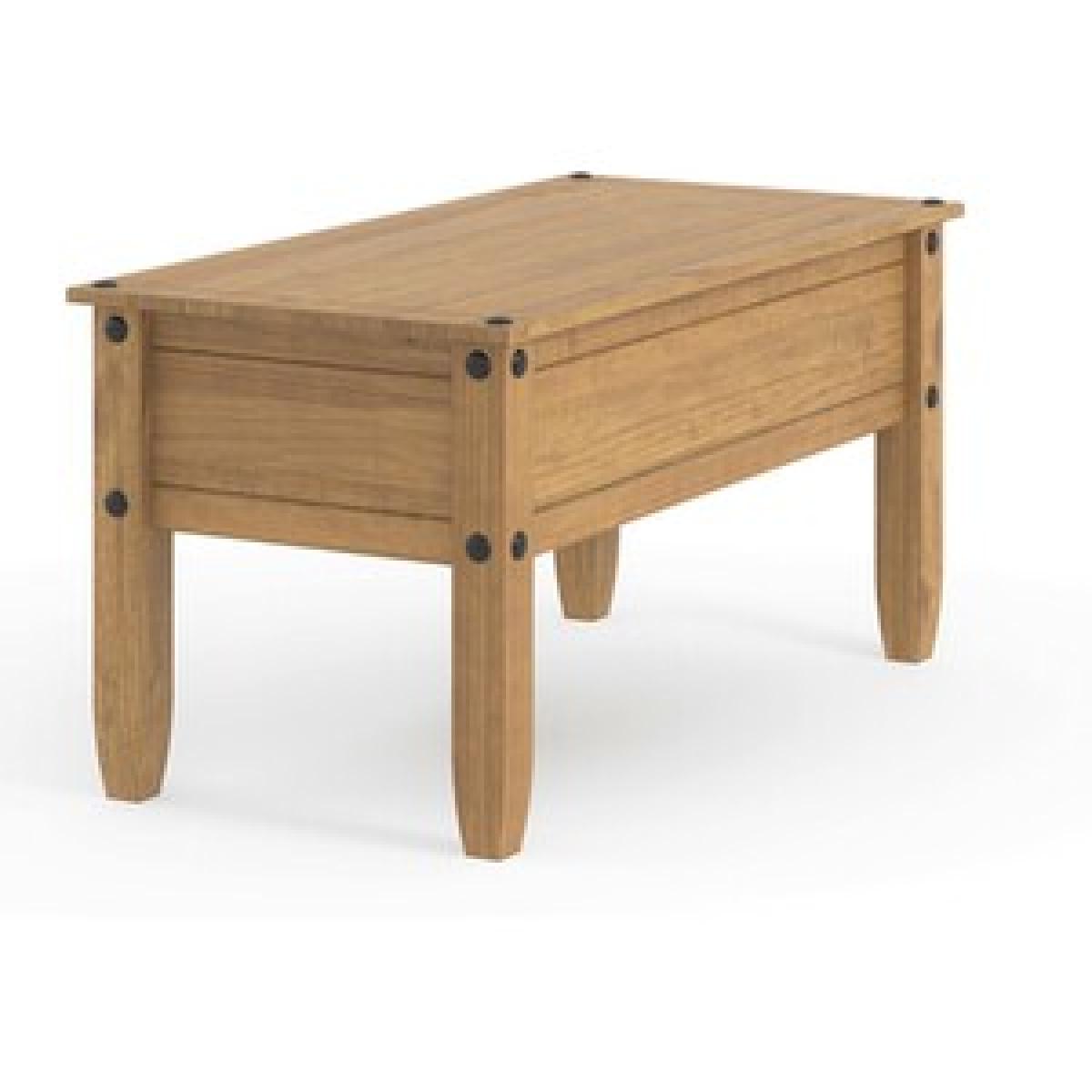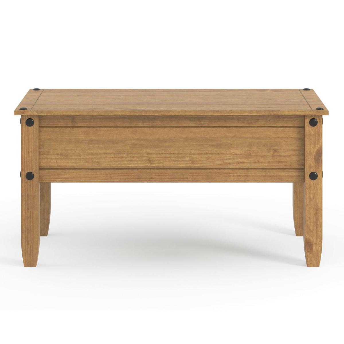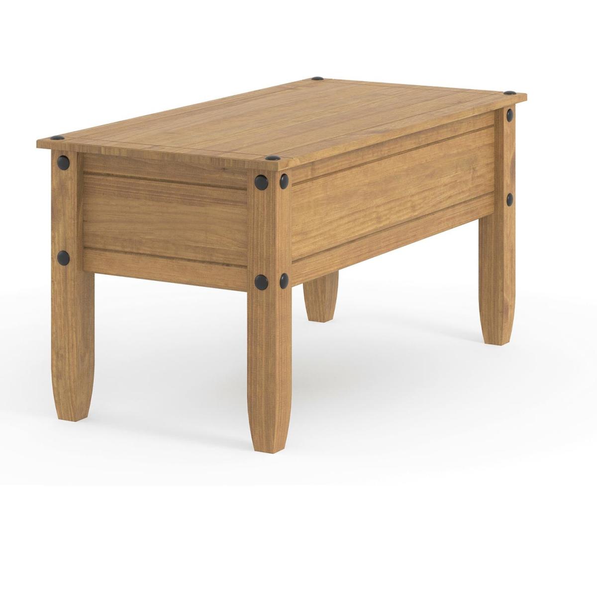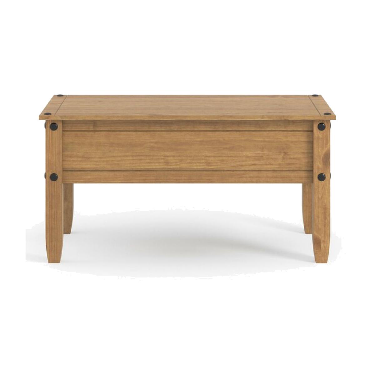 Crafted in a natural colour tone with a vintage look, this distressed waxed pine coffee table features black stud detailing and contemporary sleek lines, making this coffee table ideal for any living space.