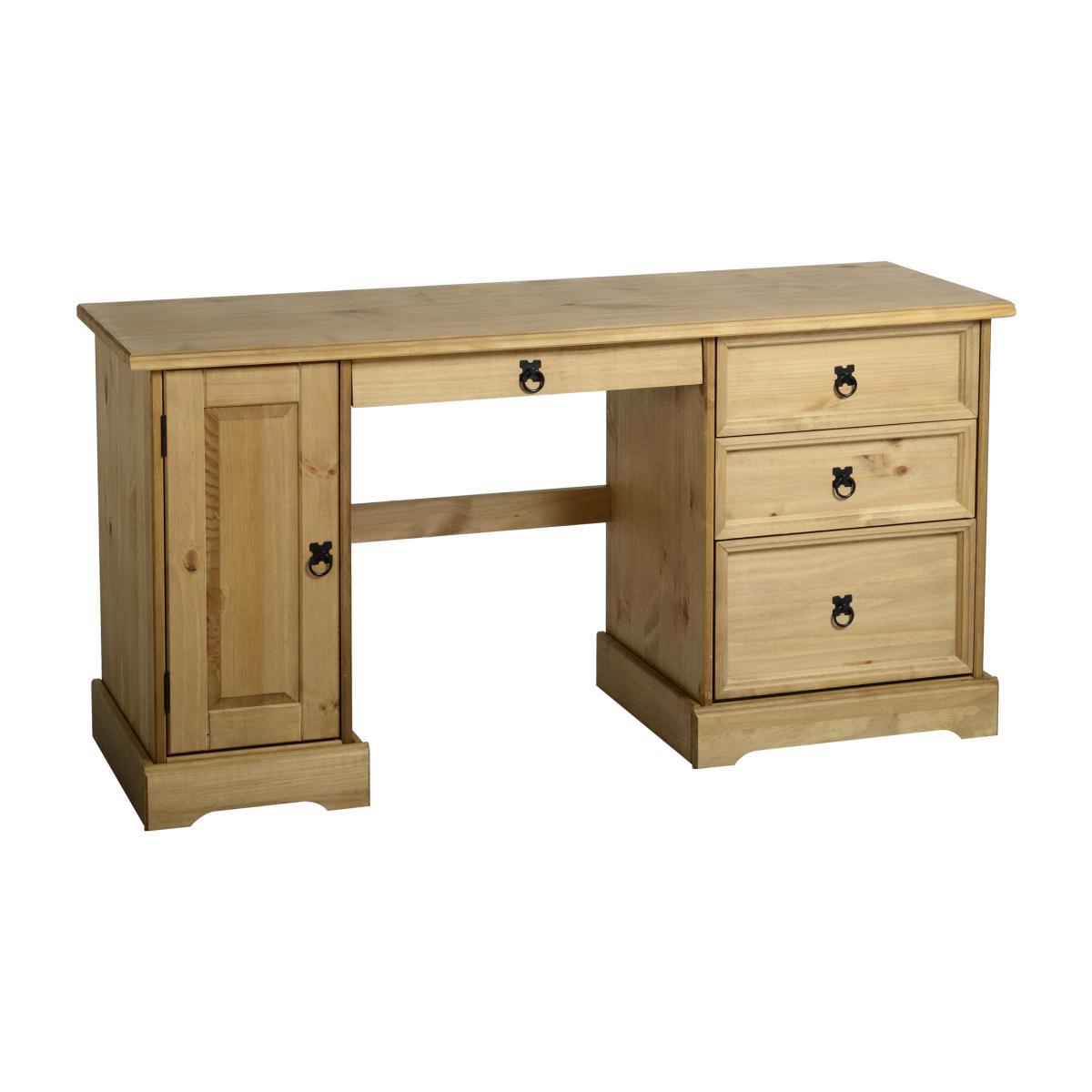 This sturdy computer desk is made from distressed waxed pine. It features a special pull-out panel for your keyboard that can be hidden when not in use. And with three spacious drawers and a cupboard attached, there is plenty of storage space for books, files or discs. dunelm. com/category/home-and-furniture/furniture/shop-by-collection/corona-furniture-collection)