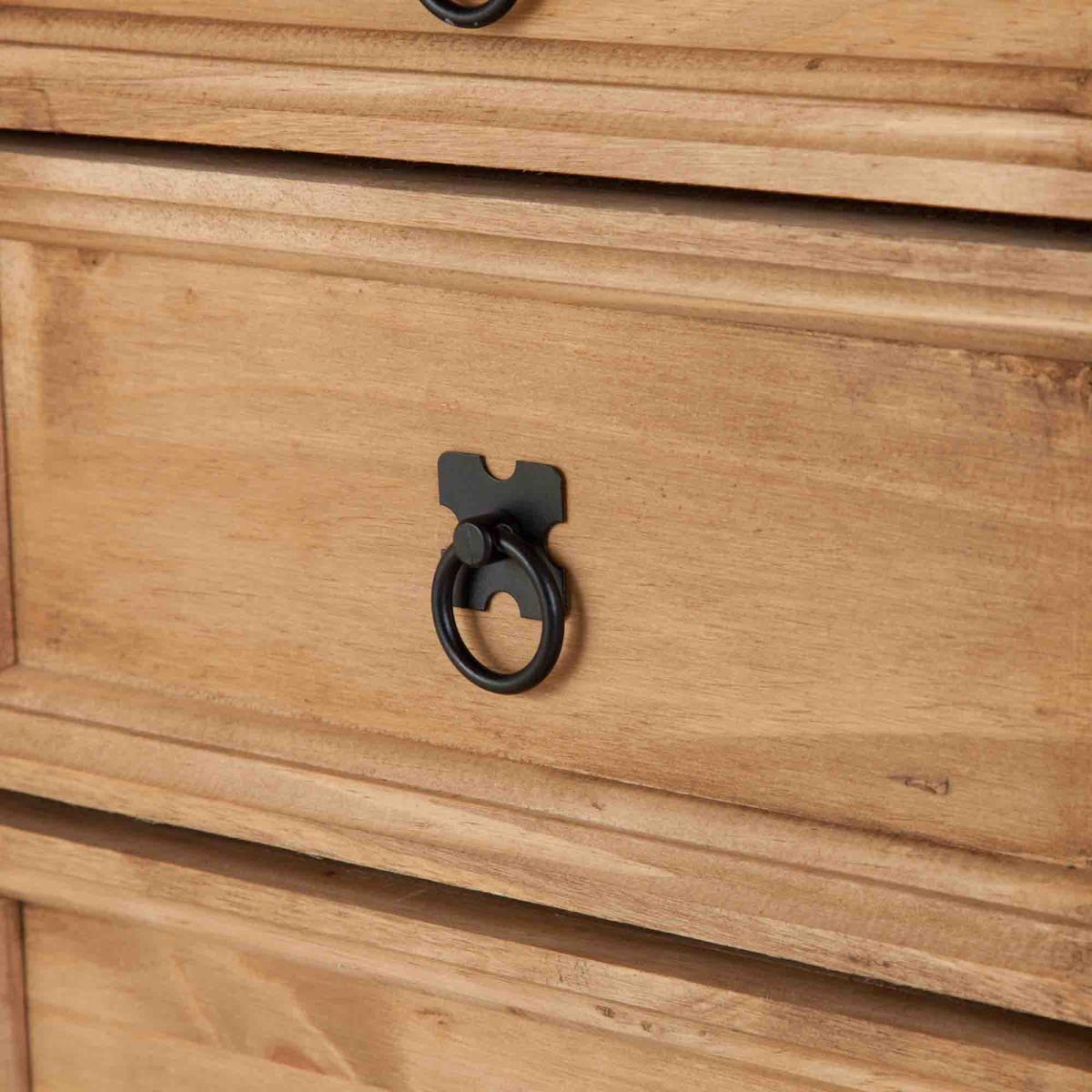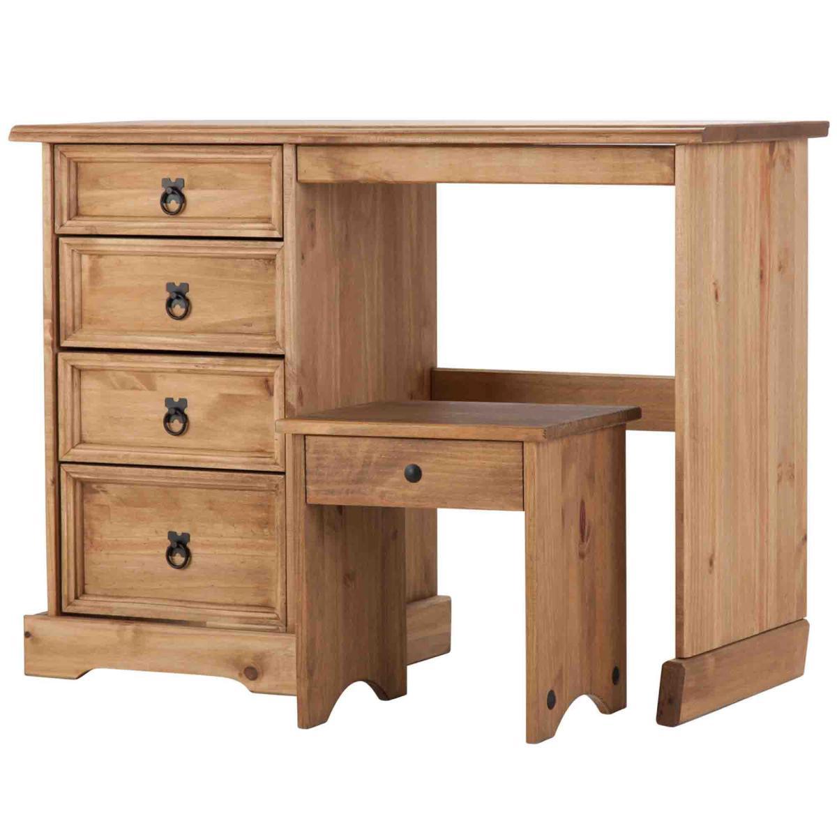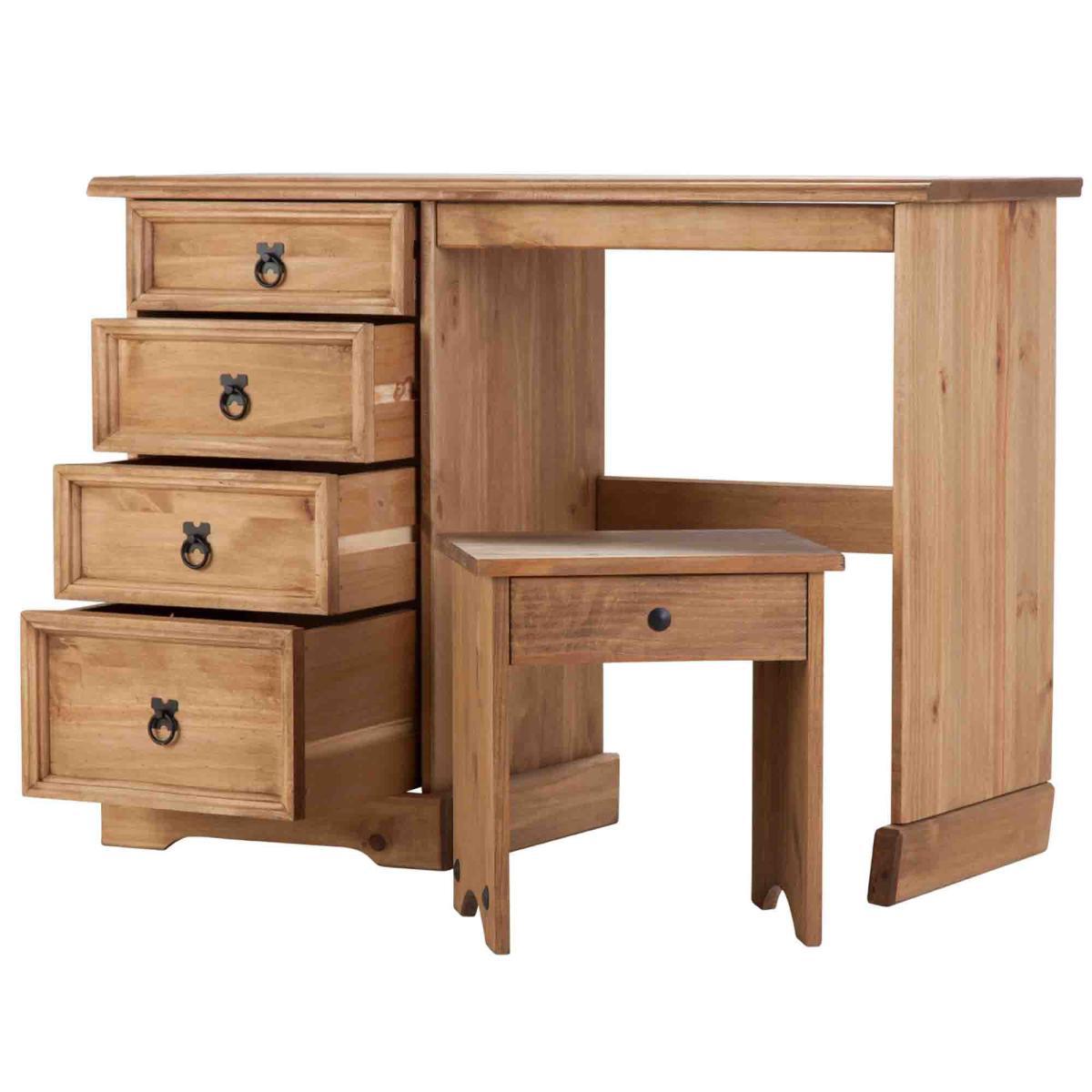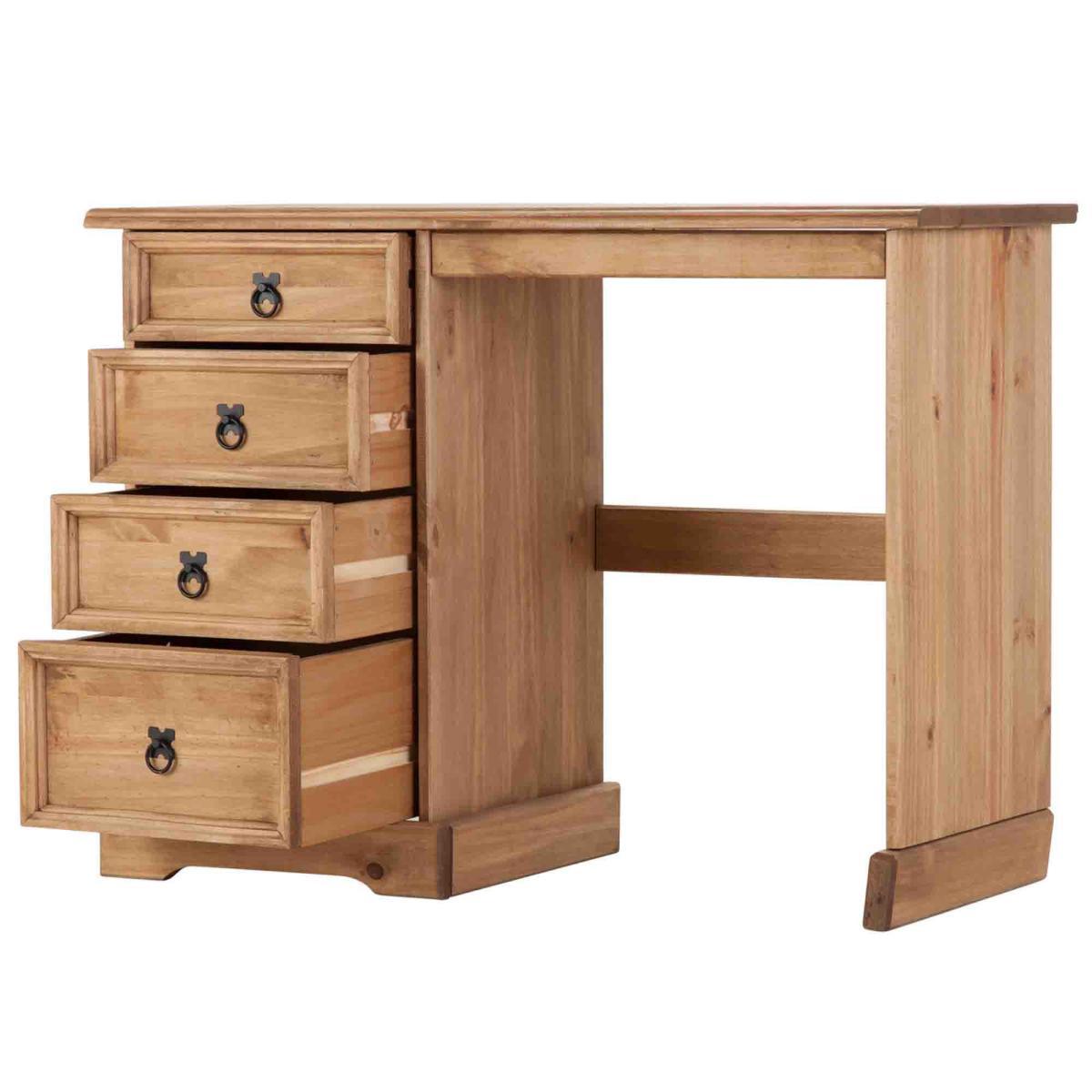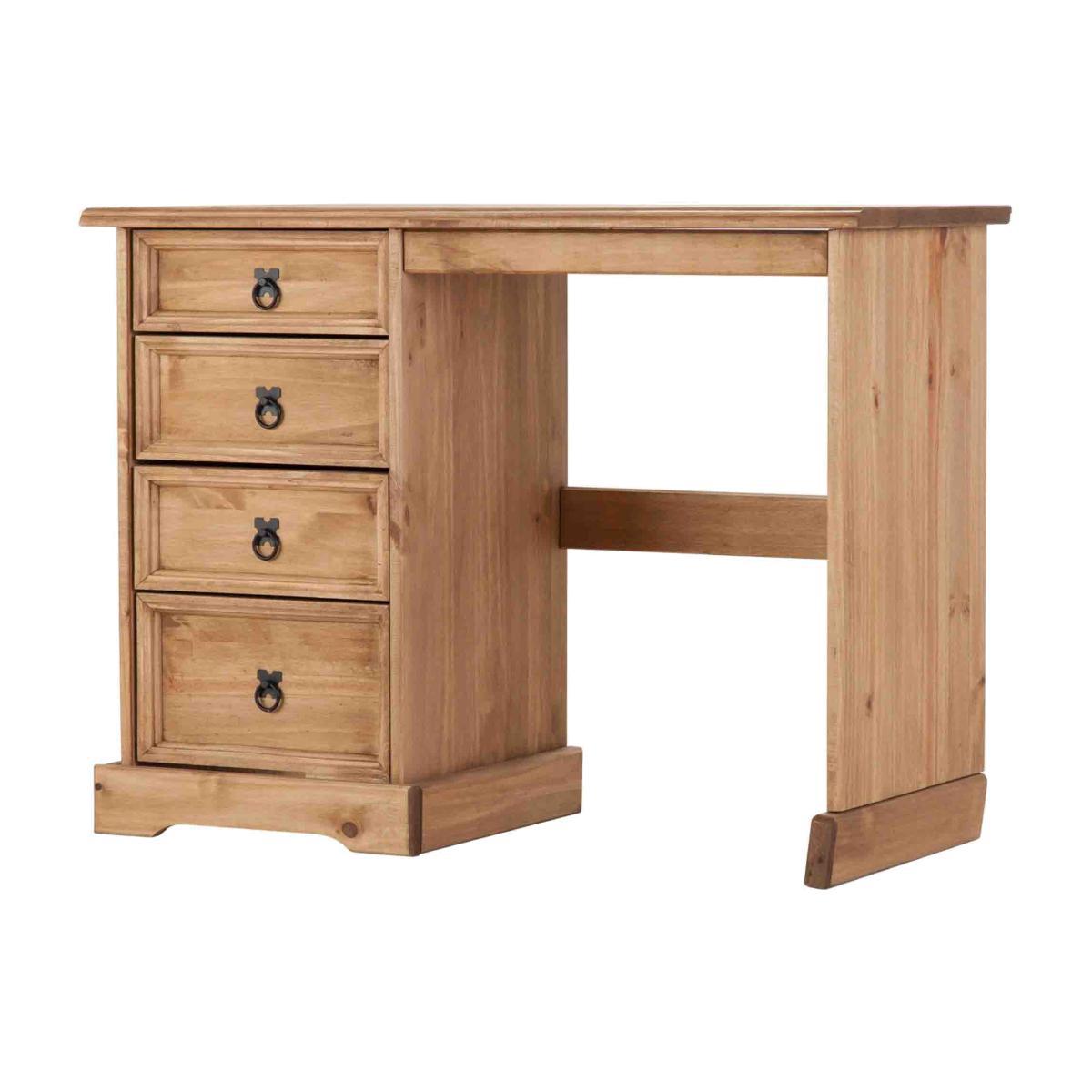 Offering style and excellent value for money the Corona Dressing Table will be the perfect addition to any bedroom. This dressing table is crafted from beautiful Mexican Pine and is protected with light wax while the metal fittings complement this rustic design. The four drawers will offer offer spacious storage space for those smaller bedroom items and features a larger bottom drawer. Please note, unfortunately we cannot deliver this item to the Channel Islands.