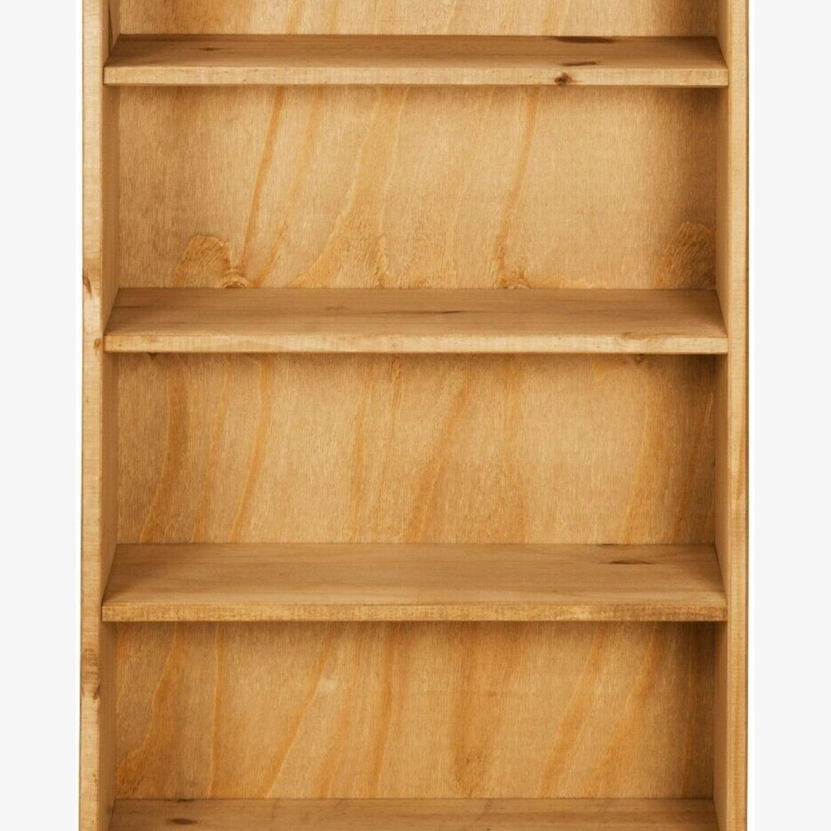 I’m drawn to this pine bookcase for its warm, natural tone and straightforward lines - it slots into Scandi, cottage-style or contemporary rooms with equal ease. The waxed finish brings out the grain without feeling overly polished, so it works well against pale walls or alongside neutral, textured soft furnishings. For styling, mix books with small baskets on lower shelves to contain remotes or cables, then layer in ceramics or a couple of potted plants at eye level for visual interest. Keep taller items towards the ends of each shelf to frame the space, and use the top surface for a framed print or a low, sculptural vase.