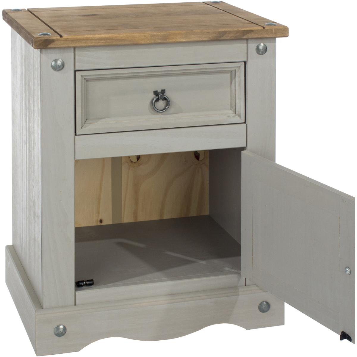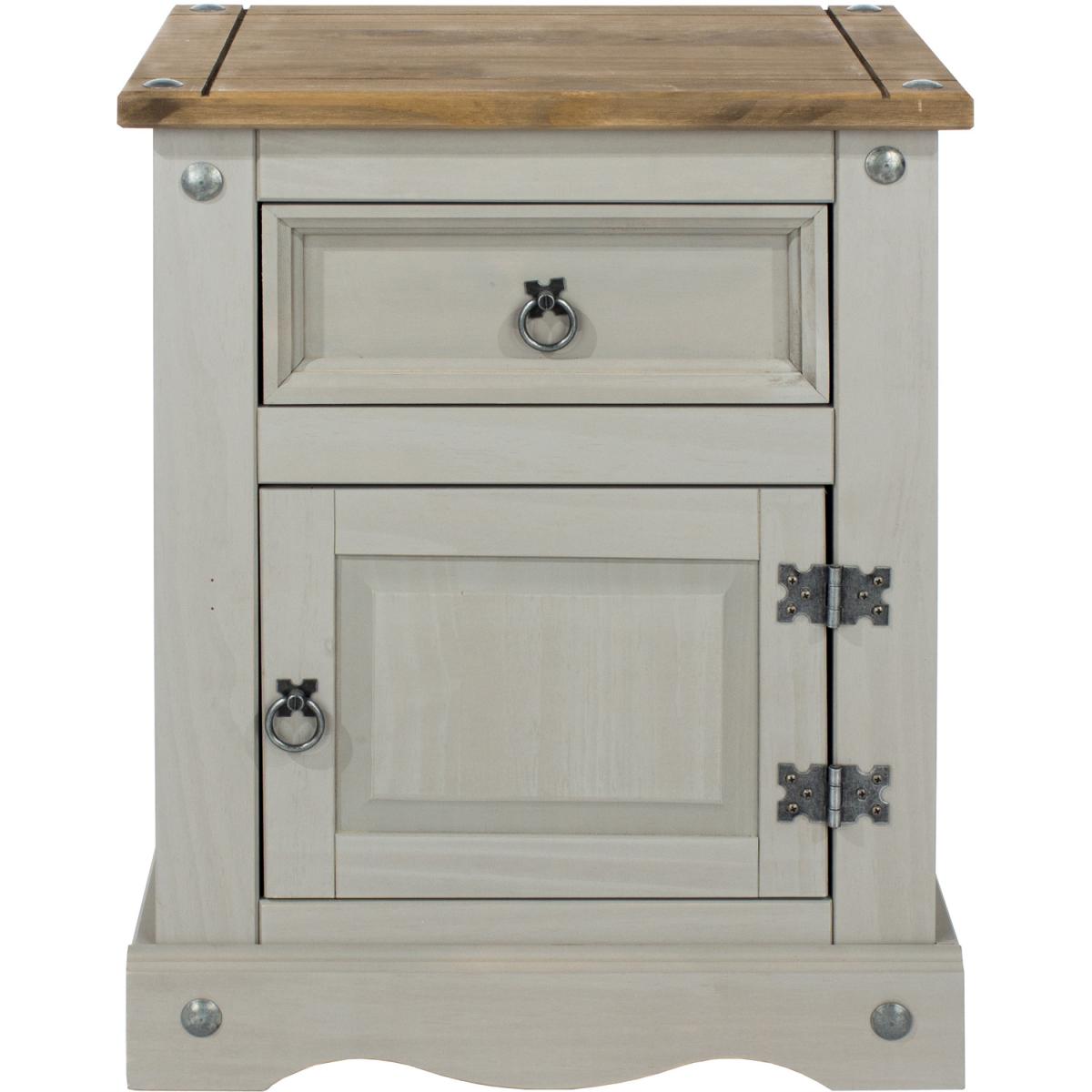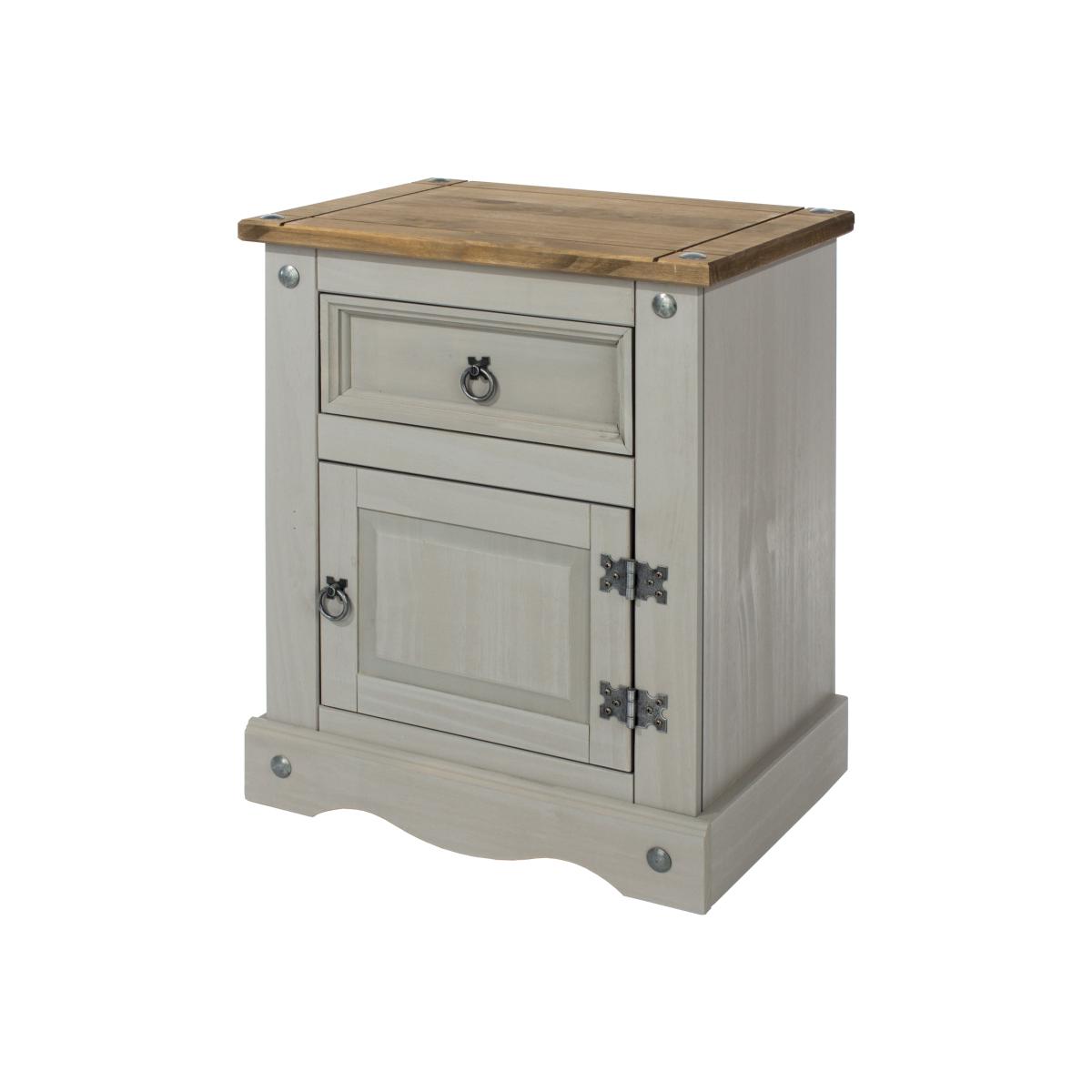 Corona Grey 1 door 1 drawer bedside cabinet - Grey washed wax