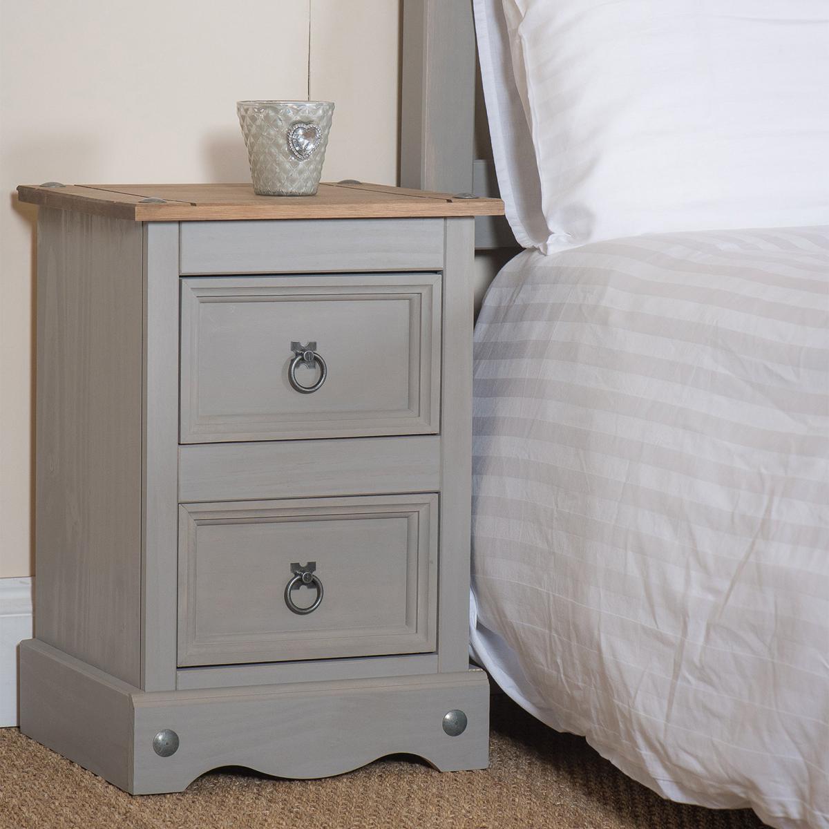Corona Grey 2 Drawer Petite Bedside Cabinet Grey