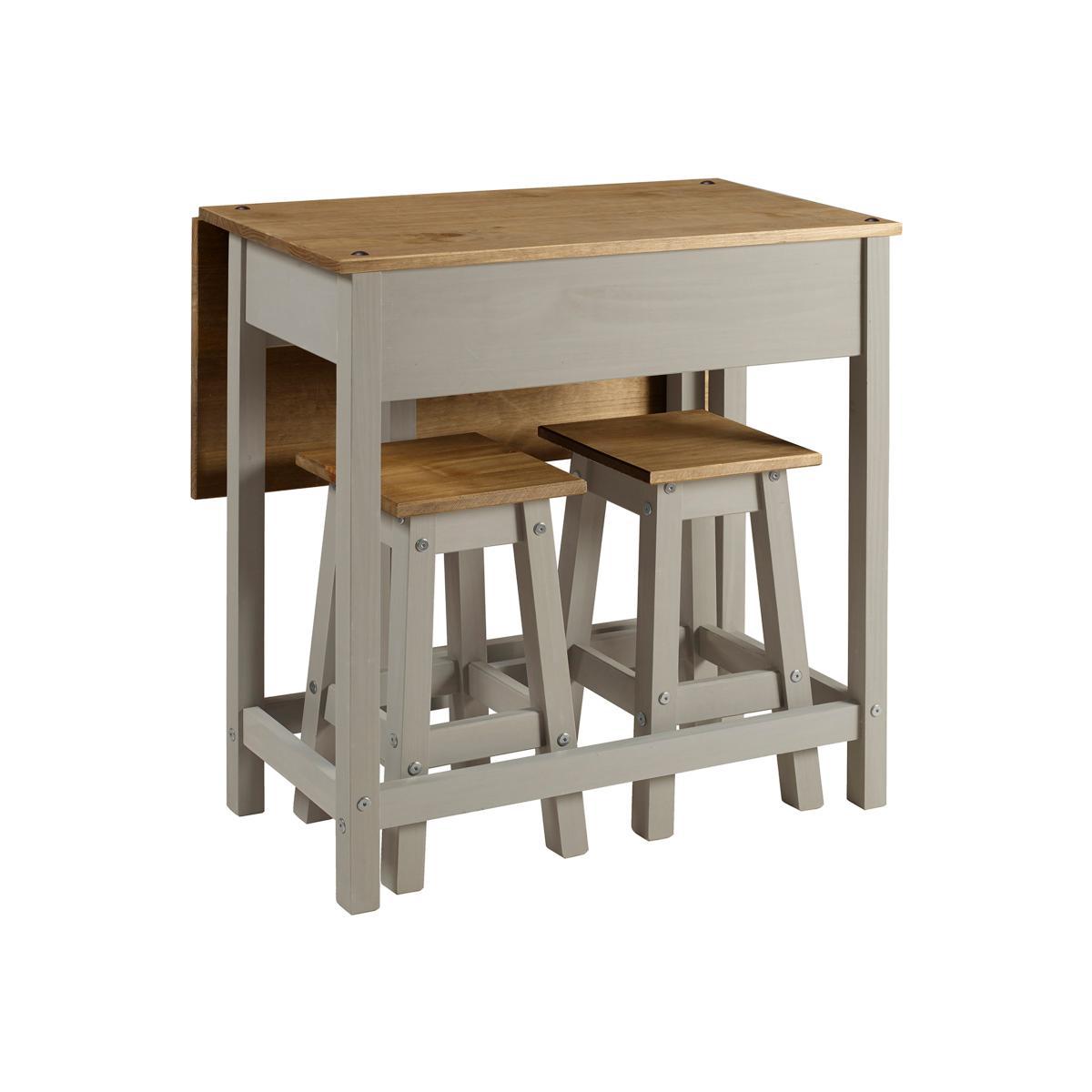 The Corona Grey Drop Leaf Table Dining Set is made entirely from responsibly sourced South American pine and features quality construction methods. The classic Corona antique wax finish is applied to the tops, contrasting beautifully with the grey wash wax, which, with its subtle colouring, allows the natural grains and textures of the real wood to show through. Dimensions:. Please note, unfortunately we cannot deliver this item to the Channel Islands.
