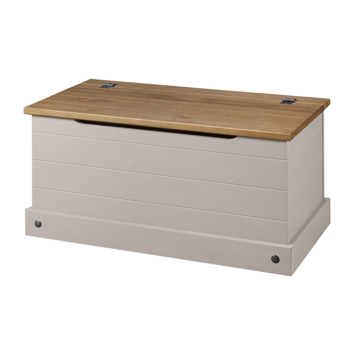 This Corona Grey Storage Chest Ottoman not only sports a timeless and rustic look but also adds much needed storage space to any bedroom, study or dressing room. Spacious Grey Storage Chest adds style and allow for more organized storage solution. Crafted from solid pine with no veneers, its painted grey finish enhances the wood grain and this together with the ornate hinges, handles and studs create a distressed rustic look.
