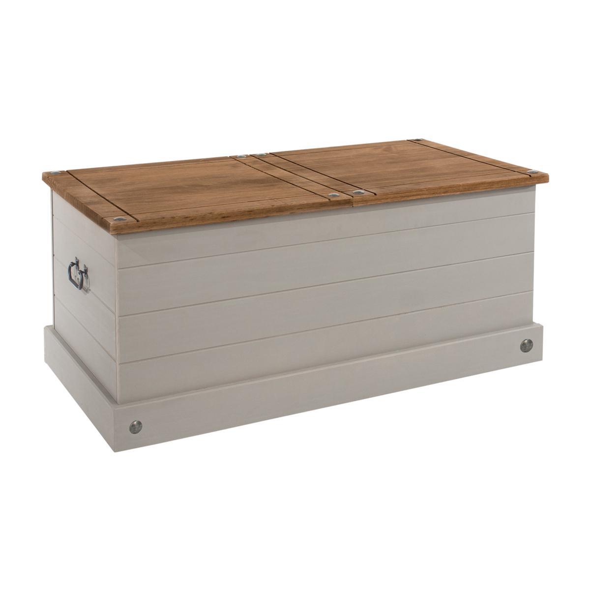 Crafted from pine wood with a simple design, the Corona Grey Sliding Top Storage Trunk makes a sturdy addition to the home and a fantastic storage space. Please note, unfortunately we cannot deliver this item to the Channel Islands.