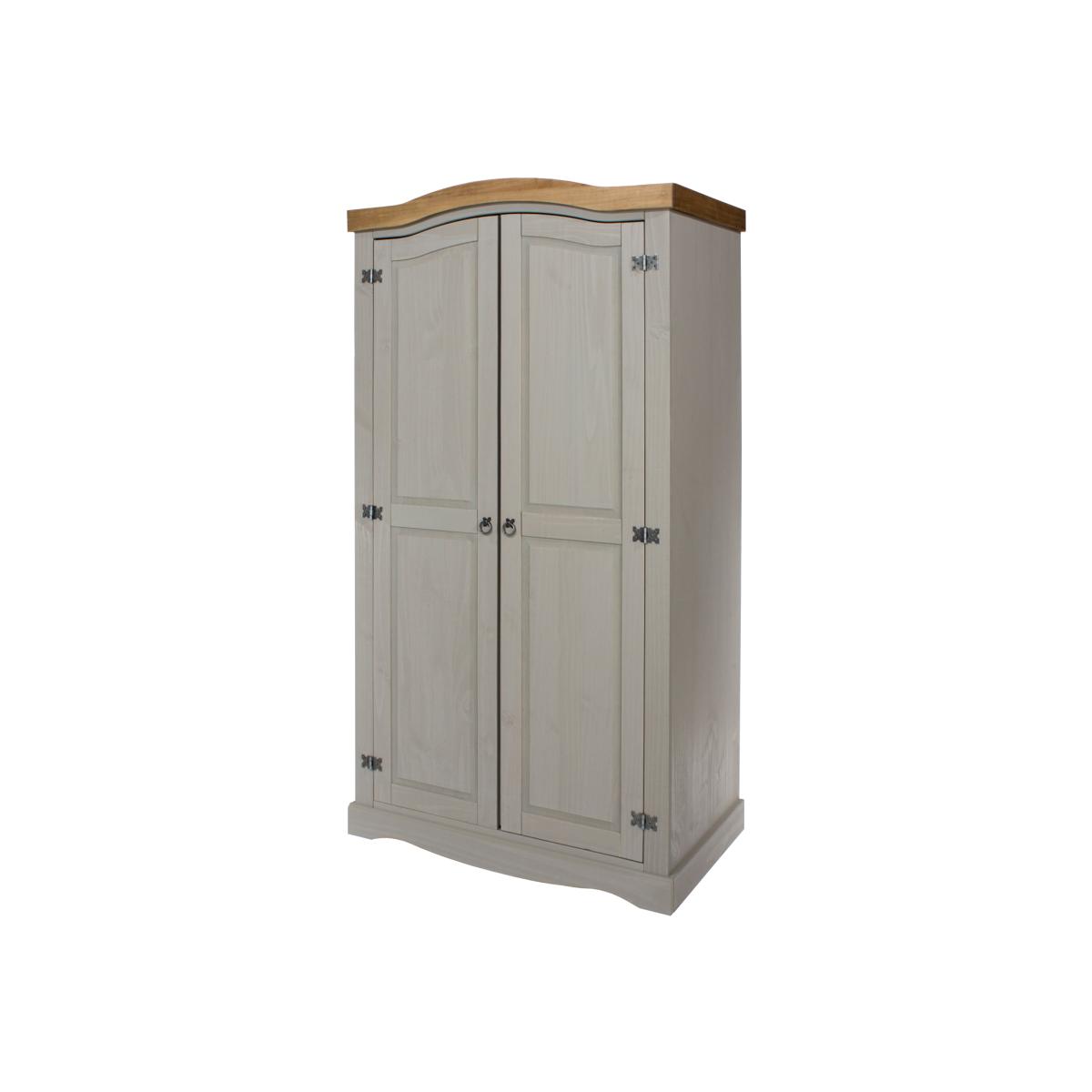 Create the bedroom of your dreams with this Corona Grey Washed Two Door Wardrobe. Its two spacious doors open to reveal a full width hang rail, perfect for storing your garments, keeping them dust and crease free. There is also a spacious shelf for keeping linens or other small pieces of clothing and shoes. The Corona range expertly blends contemporary and rustic looks with its exposed gun grey studs and hinges and bevelled door fronts, paired with the grey wash and pine top contrast. Therefore, no matter what style of home you have, this set is sure to complement it.