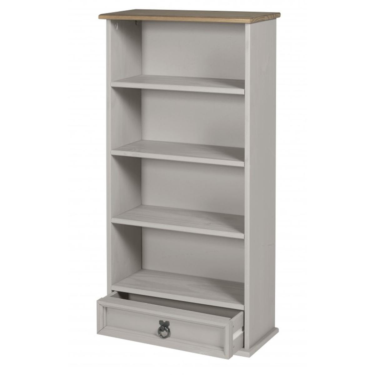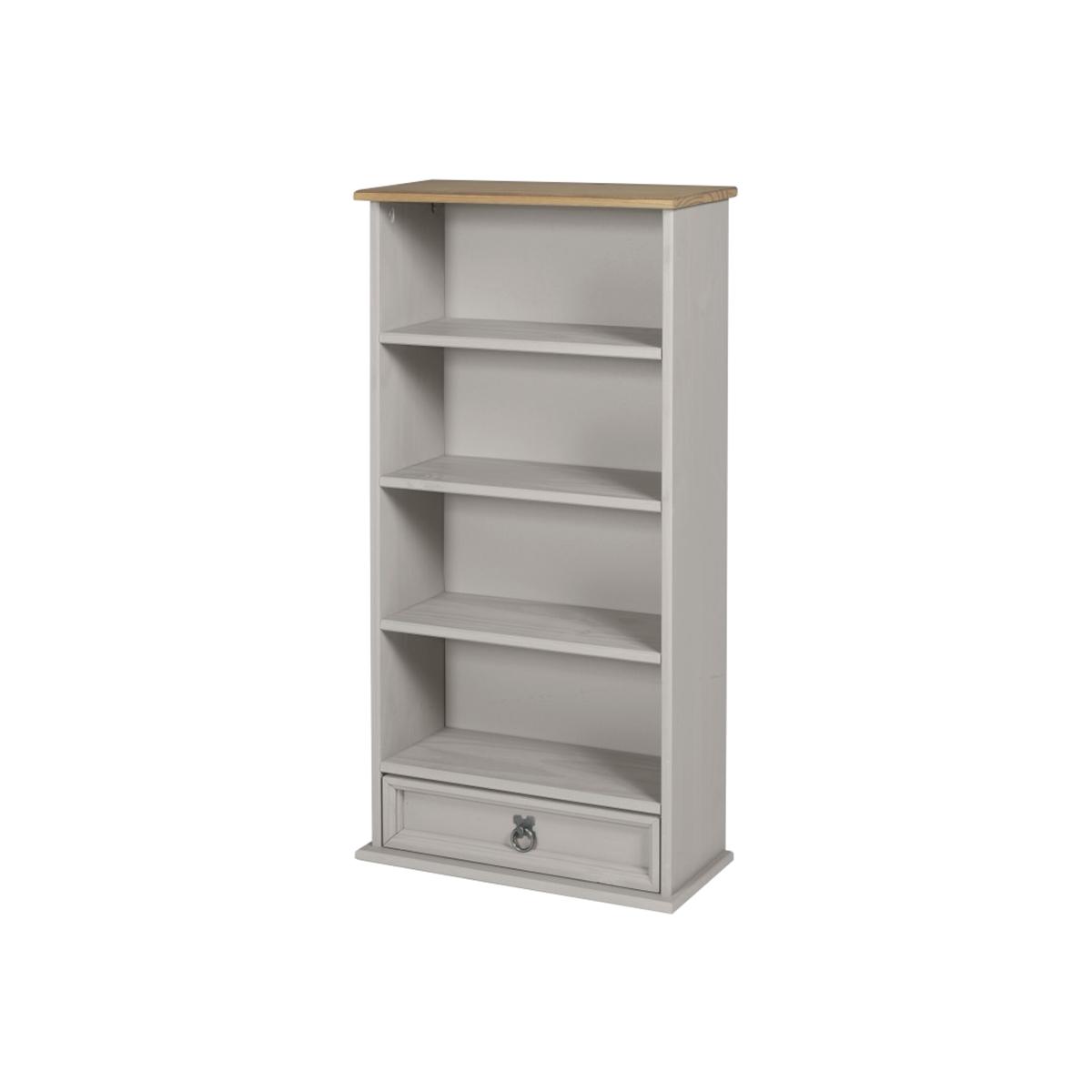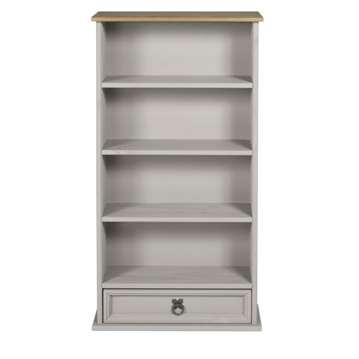 Mercers Furniture is happy to offer this Corona Grey Wax 1 Drawer DVD Rack, with a subtle grey wash body that allows the natural grains and textures of the wood to show through it offers a beautiful modern twist on a classic design while retaining all the characteristics that Corona is known and loved for. The item is expertly crafted from solid pine and hand waxed to protect, preserve as well as enhance the grain. With shelves and a drawer for extra storage it offers outstanding value for money that would be a welcome addition to any home. Finished off with decorative metal fittings which give the item its distinctive Mexican styling and offers that warm rustic country charm. The item has hardboard backs and drawer base, its delivered flat packed for easy home assembly with step-by-step instructions. Height - 103cm. Width - 52cm. Depth - 18cm