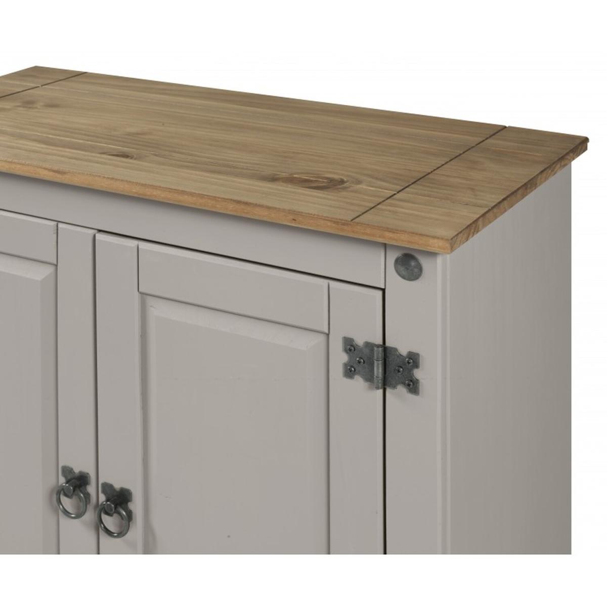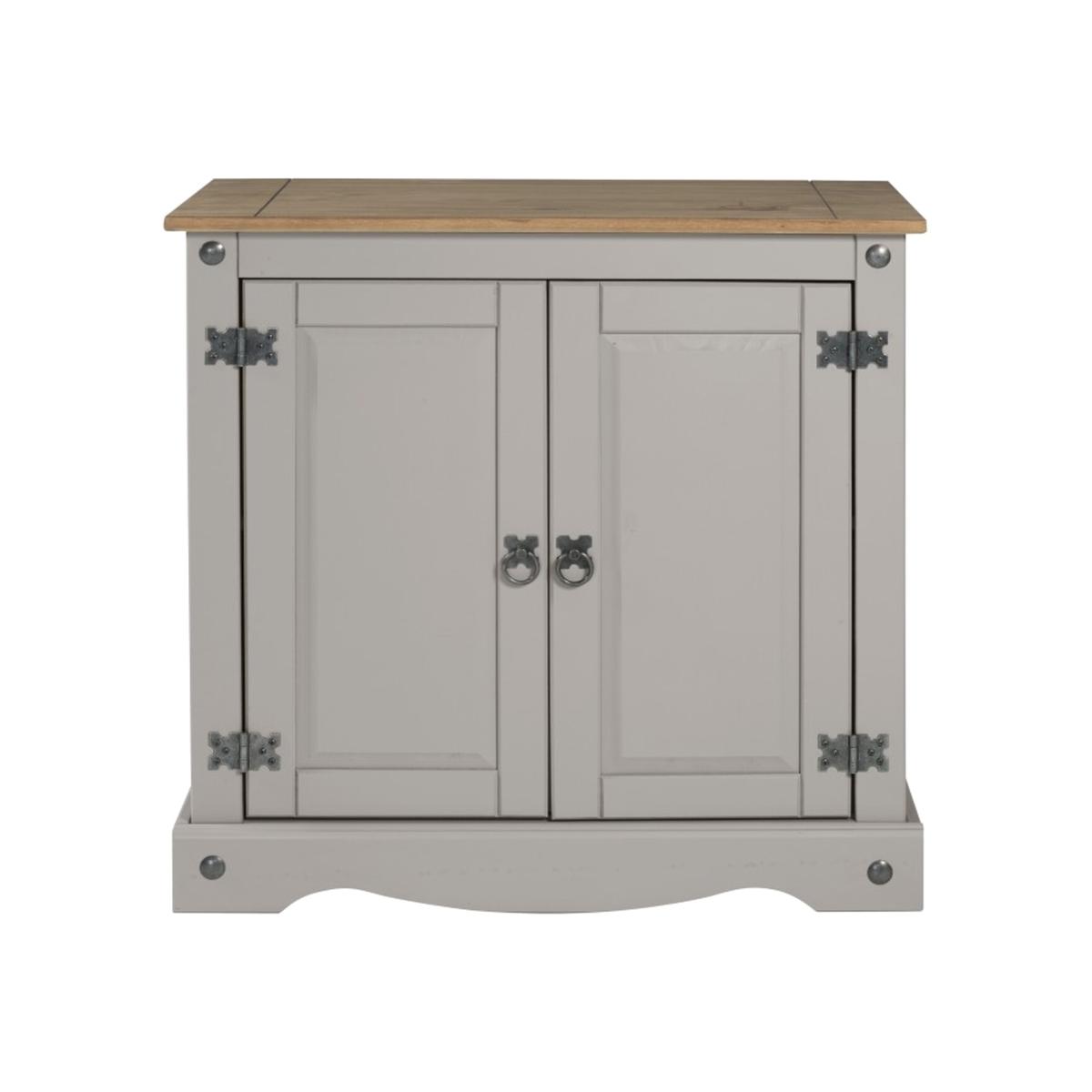Mercers Furniture is happy to offer this Corona Grey Wax 2 Door Cupboard, with a subtle grey wash body that allows the natural grains and textures of the wood to show through it offers a beautiful modern twist on a classic design while retaining all the characteristics that Corona is known and loved for. The item is expertly crafted from solid pine and hand waxed to protect, preserve as well as enhance the grain. With an 2 doors the unit offers outstanding value for money that would be a welcome addition to any home. Finished off with decorative metal fittings which give the item its distinctive Mexican styling and offers that warm rustic country charm. The item has harboard backs and is delivered flat packed for easy home assembly with step-by-step instructions. Height - 73cm. Width - 75cm. Depth - 36cm