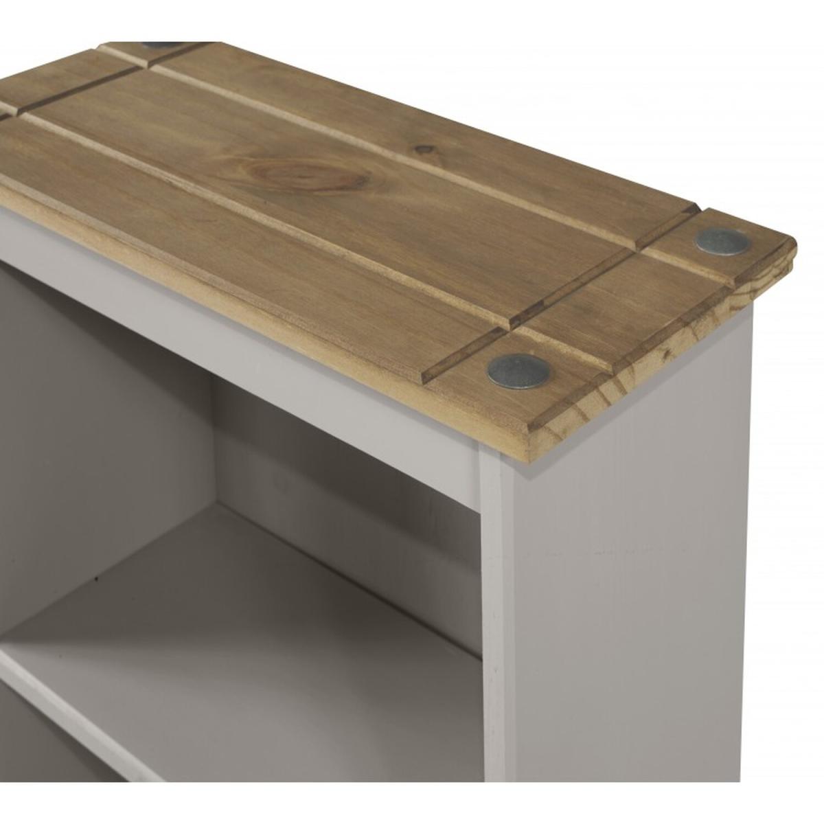 Mercers Furniture is happy to offer this Corona Grey Wax Low Narrow Bookcase, with a subtle grey wash body that allows the natural grains and textures of the wood to show through it offers a beautiful modern twist on a classic design while retaining all the characteristics that Corona is known and loved for. The item is expertly crafted from solid pine and hand waxed to protect, preserve as well as enhance the grain. The bookcase offers outstanding value for money that would be a welcome addition to any home. Finished off with decorative metal fittings which give the item its distinctive Mexican styling and offers that warm rustic country charm. The item has harboard backs and is delivered flat packed for easy home assembly with step-by-step instructions. Height - 104cm. Width - 46cm. Depth - 20cm