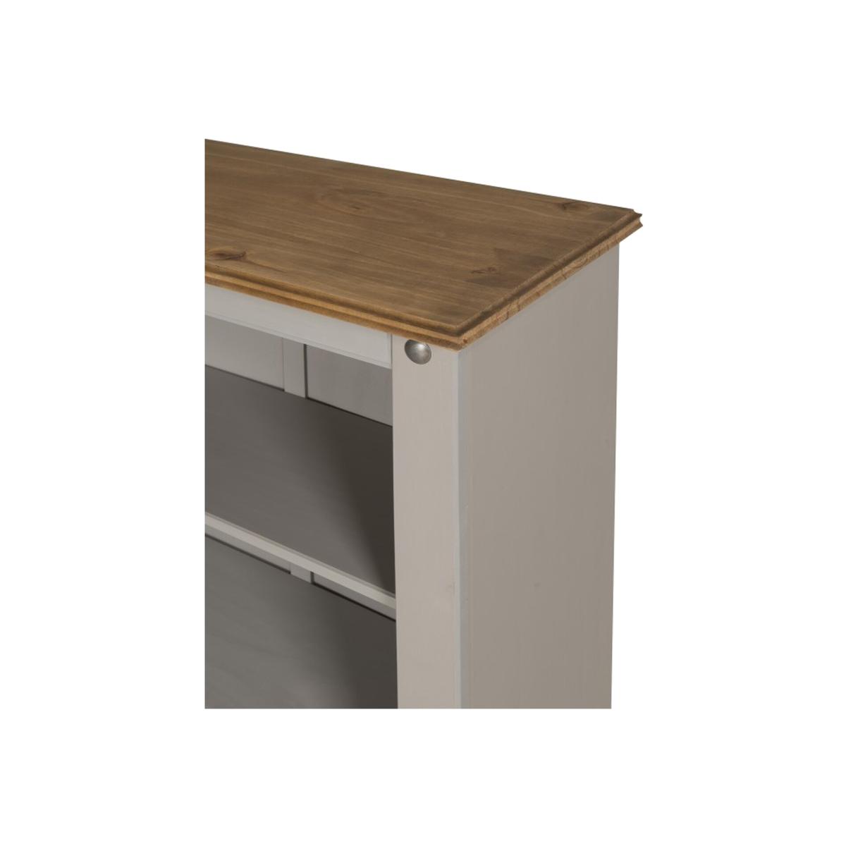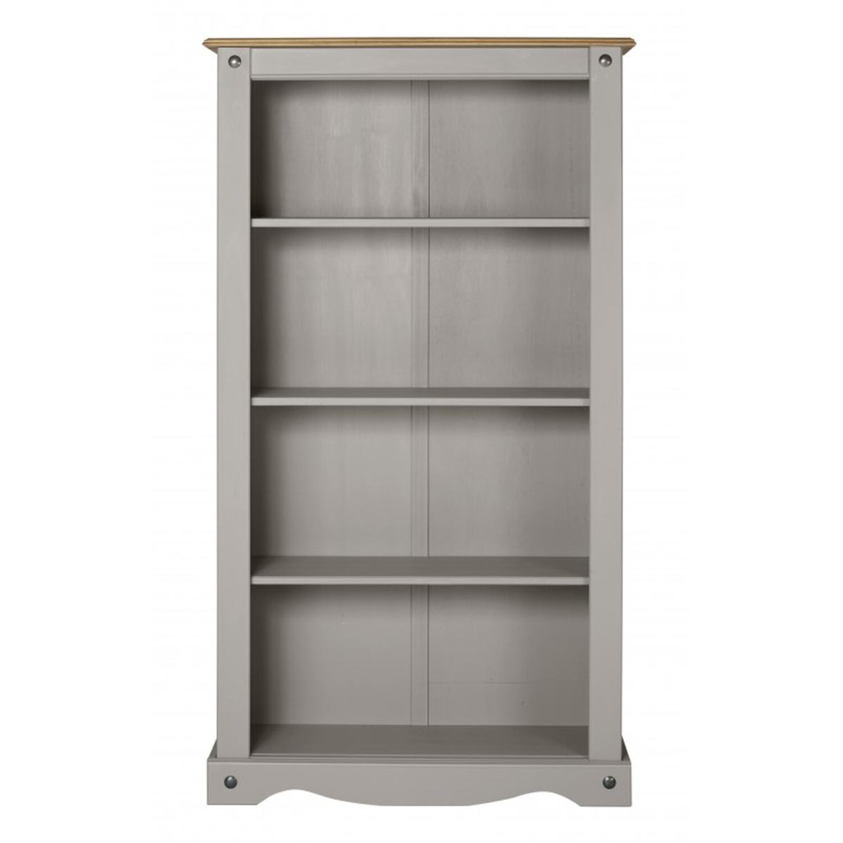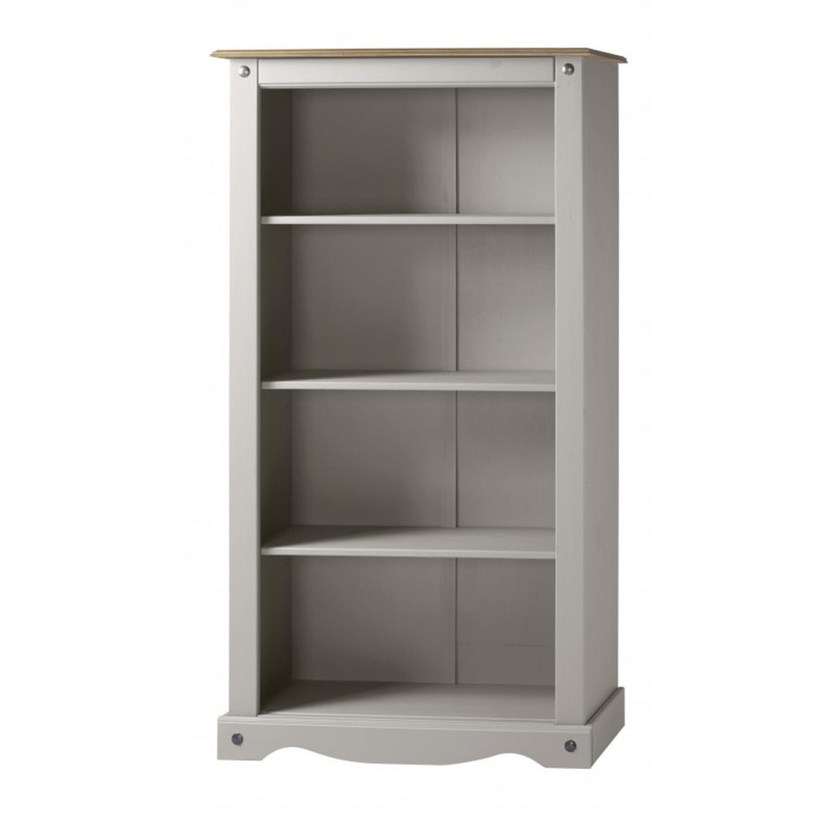 Mercers Furniture is happy to offer this Corona Grey Wax Medium Bookcase, with a subtle grey wash body that allows the natural grains and textures of the wood to show through it offers a beautiful modern twist on a classic design while retaining all the characteristics that Corona is known and loved for. The item is expertly crafted from solid pine and hand waxed to protect, preserve as well as enhance the grain. The bookcase offers outstanding value for money that would be a welcome addition to any home. Finished off with decorative metal fittings which give the item its distinctive Mexican styling and offers that warm rustic country charm. The item has harboard backs and is delivered flat packed for easy home assembly with step-by-step instructions. Height - 150cm. Width - 82cm Depth - 29cm