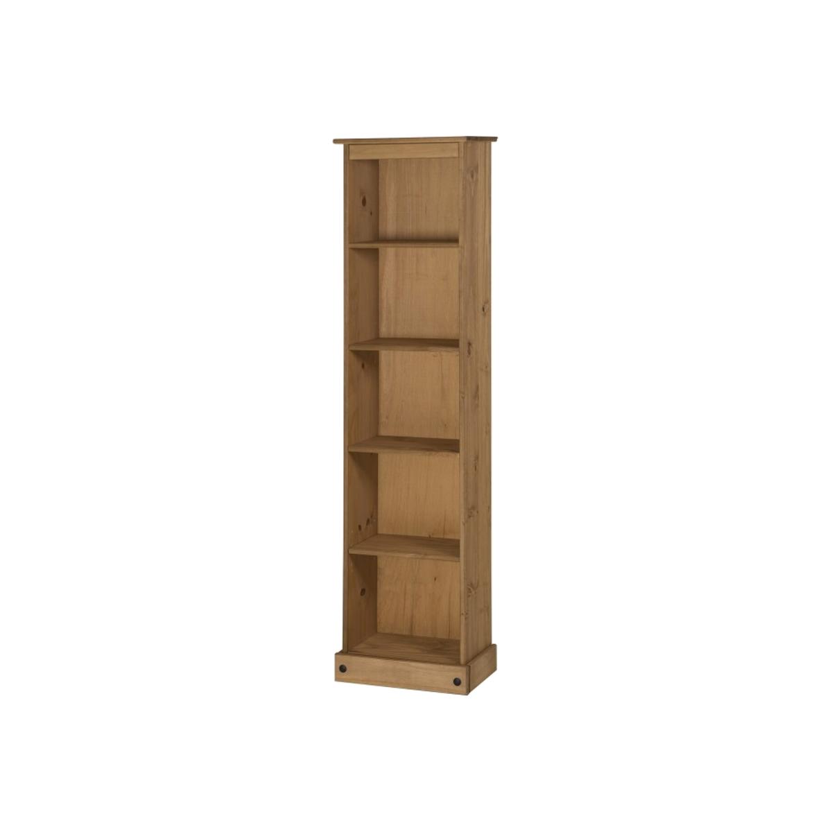 Mercers Furniture is happy to offer this Corona Tall Narrow Bookcase, expertly crafted from solid pine and hand waxed to preserve as well as enhance the grain. It offers outstanding value for money that would be a welcome addition to any home. The item is finished off with black metal fittings which give a distinctive Mexican styling and offers that warm rustic country charm. The item has hardboard backs and is delivered flat packed for easy home assembly with step-by-step instructions. Height - 176cm. Width - 46cm. Depth - 20cm