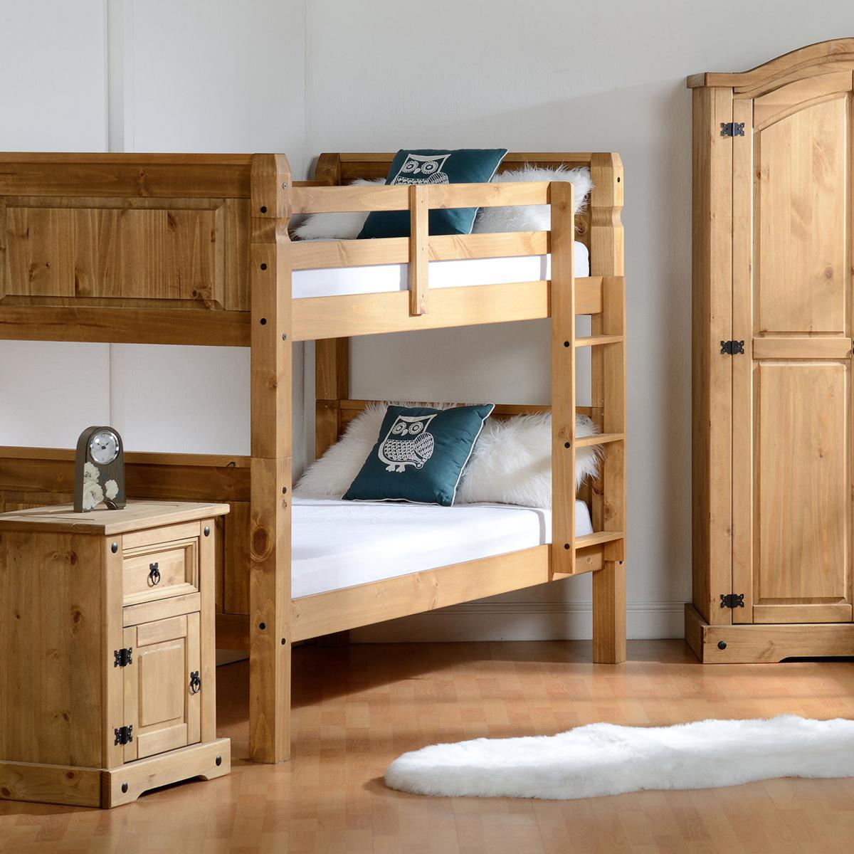The Corona Bunk Bed is a beautifully designed bunk bed with a distressed waxed pine finish which will add a soft, natural touch to any bedroom. This versatile bunk bed can be split into two separate single beds when the kids are older. Featuring chunky framing and side rails on the top bunk, this bed is sturdy and secure. Please note, unfortunately we cannot deliver this item to the Channel Islands. Suitable for ages 6 years and over.