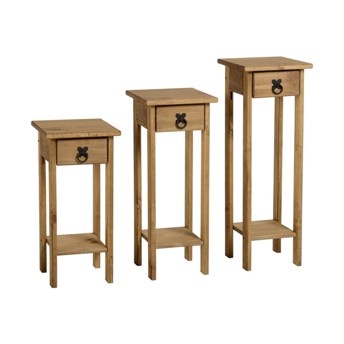 The Seconique Corona Set of 3 Plant Stands boasts a beautiful distressed waxed pine finish that will bring a whole new look to your home. The attractive design with metal drop handles and the rich colour of the wood make it a superb piece of furniture to look at that is also highly functional. Please note, unfortunately we cannot deliver this item to the Channel Islands.
