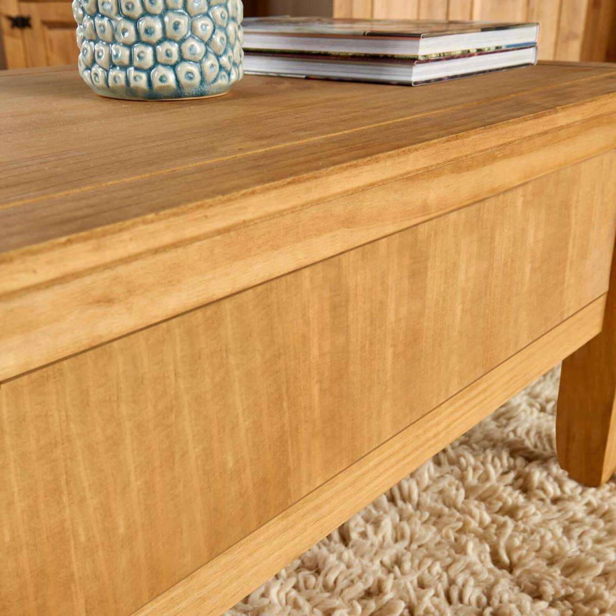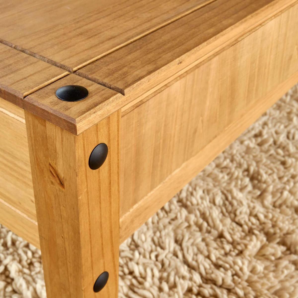 Part of our solid wood Corona Collection, our Corona Coffee Table has rustic style with metal bolts and ring handle, plus chunky legs. Picture this classic Corona Coffee Table in your living room you can relax out with a cup of tea or coffee, or serve afternoon tea to friends, or unwind with a TV dinner with your family. Or just use it for working or surfing or showing off a beautiful display of flowers or fruit.