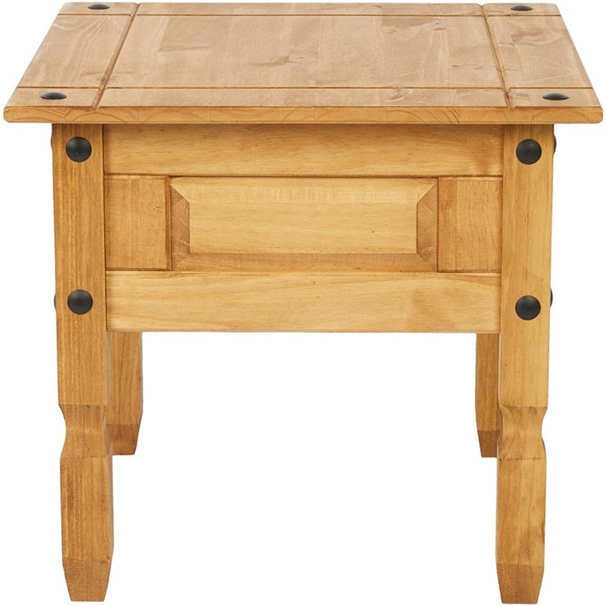Mercers Furniture is happy to offer this Corona Lamp Table, expertly crafted from solid pine and hand waxed to preserve as well as enhance the grain. It offers outstanding value for money that would be a welcome addition to any home. The item is finished off with black metal fittings which give a distinctive Mexican styling and offers that warm rustic country charm. The item is supplied flat packed for easy home assembly with step-by-step instructions.