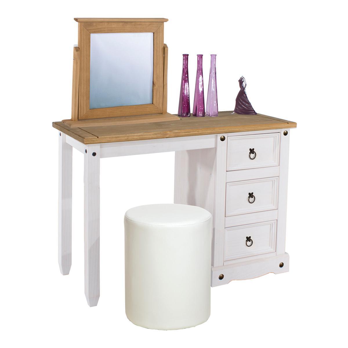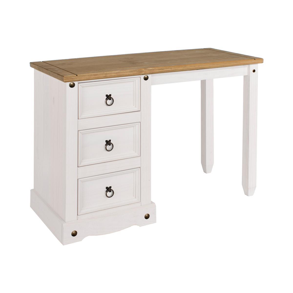 Fashioned from pine wood, the Corona White Single Pedestal Dressing Table is a fantastic investment piece for the home. Offering table space which could be used as a working desk or vanity, and three drawers for storage, this multipurpose dressing table is a practical and beautiful addition. Please note, unfortunately we cannot deliver this item to the Channel Islands.