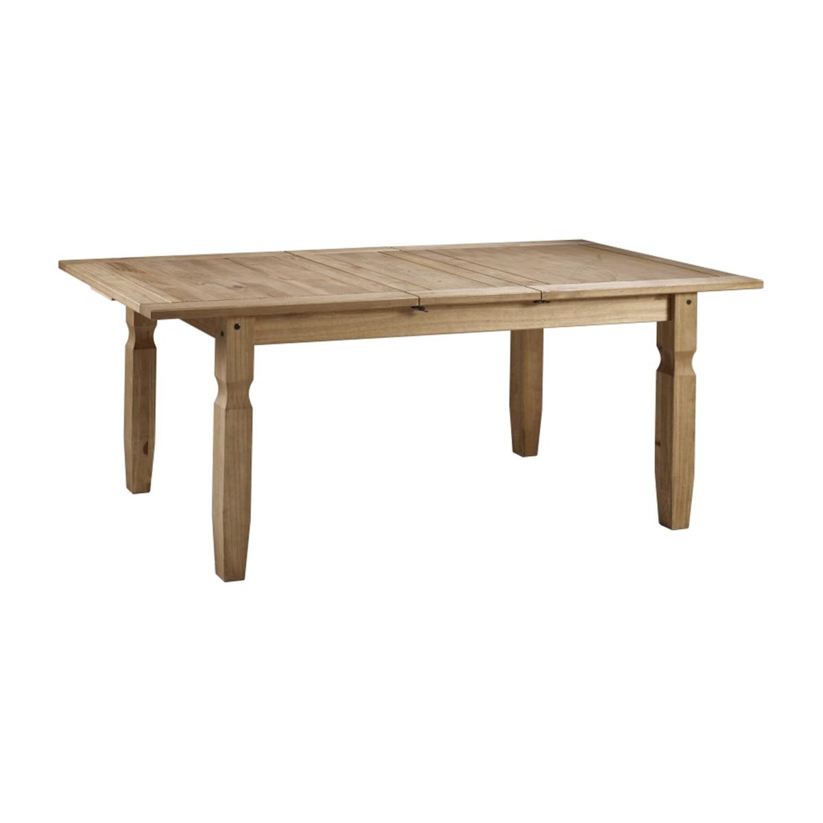 Mercers Furniture is happy to offer this Corona Small Extending Dining Table, expertly crafted from solid pine and hand waxed to preserve as well as enhance the grain. It offers outstanding value for money that would be a welcome addition to any home. The table is finished off with black metal fittings which give the dining set its distinctive Mexican styling and offers that warm rustic country charm. The item is supplied flat packed for easy home assembly with step-by-step instructions. Height - 76cm. Width - 122cm extended 162cm. Depth - 91cm