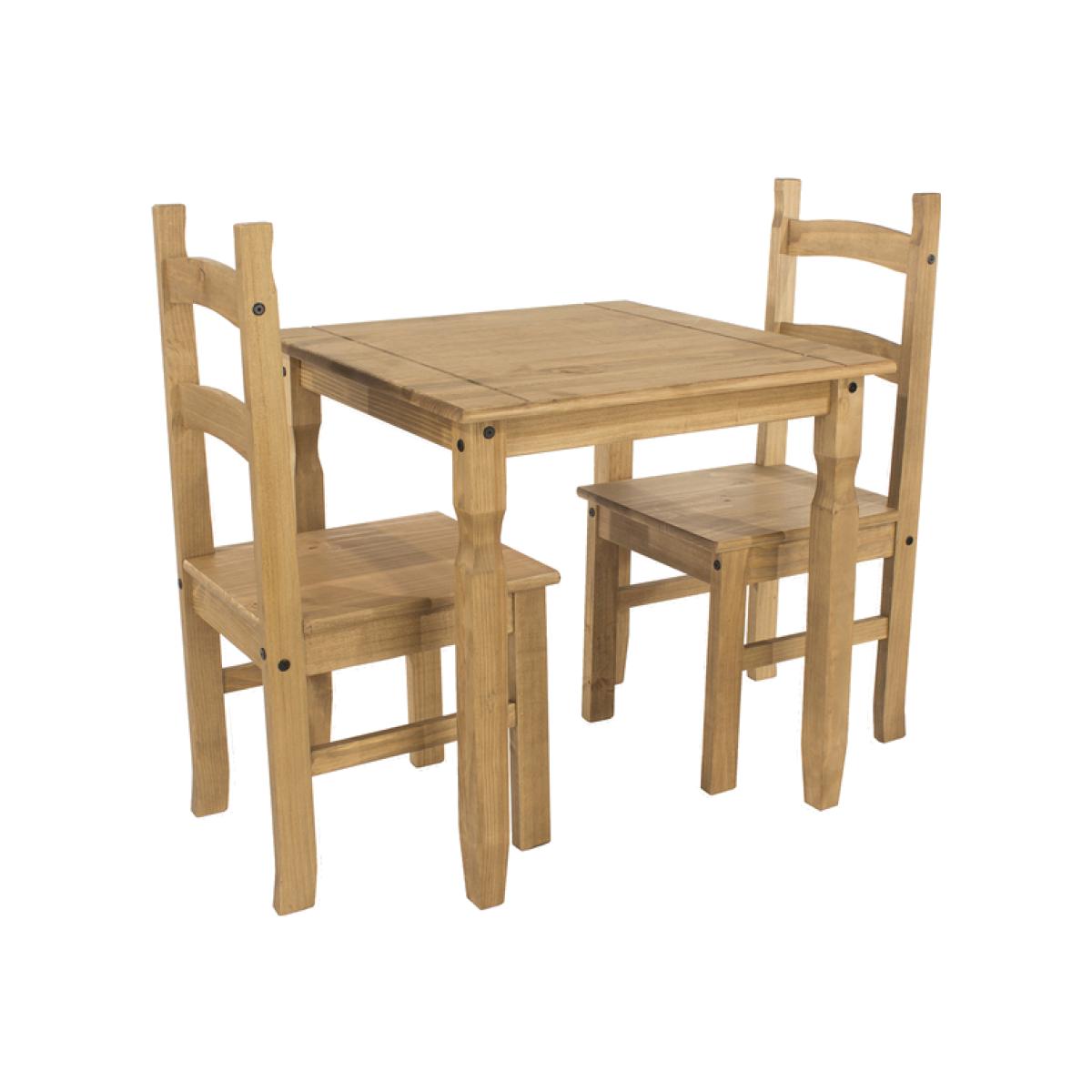 This Corona Square Table Dining Set is the perfect dining solution for those compact areas in the home. Constructed from high quality pine with a classic waxed antique pine finish. Easy assembly is required with simple to follow instructions and all fixings included. The table and two chair set is perfect for your kitchen or lounge dining area to ensure you have a dedicated space to eat.