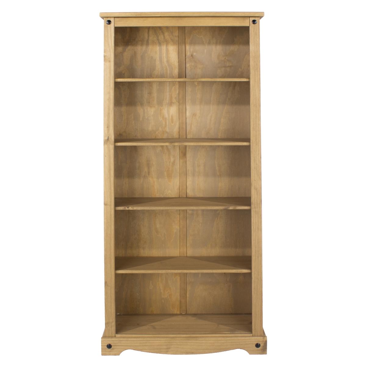 Keep your books and trinkets organised and tidy with the Tall Pine Bookcase. This natural and bright piece of furniture will make a great addition in any home. Made from solid pine, the bookcase is styled with the look of Mexican furniture, and offers a sturdy and durable construction for a long lasting addition to your room. Whether used to display prized possessions or to store your vast collection of books, the five shelves are both strong and useful. The mixture of fixed and adjustable shelving is flexible to your requirements. This versatile bookcase has an antique wax finish, bringing a rustic and light finish to your room. Its tall and slim design is compact and space saving for cosier rooms, while the black stud and solid pine detail allows for it to shine as a centrepiece in a larger room.