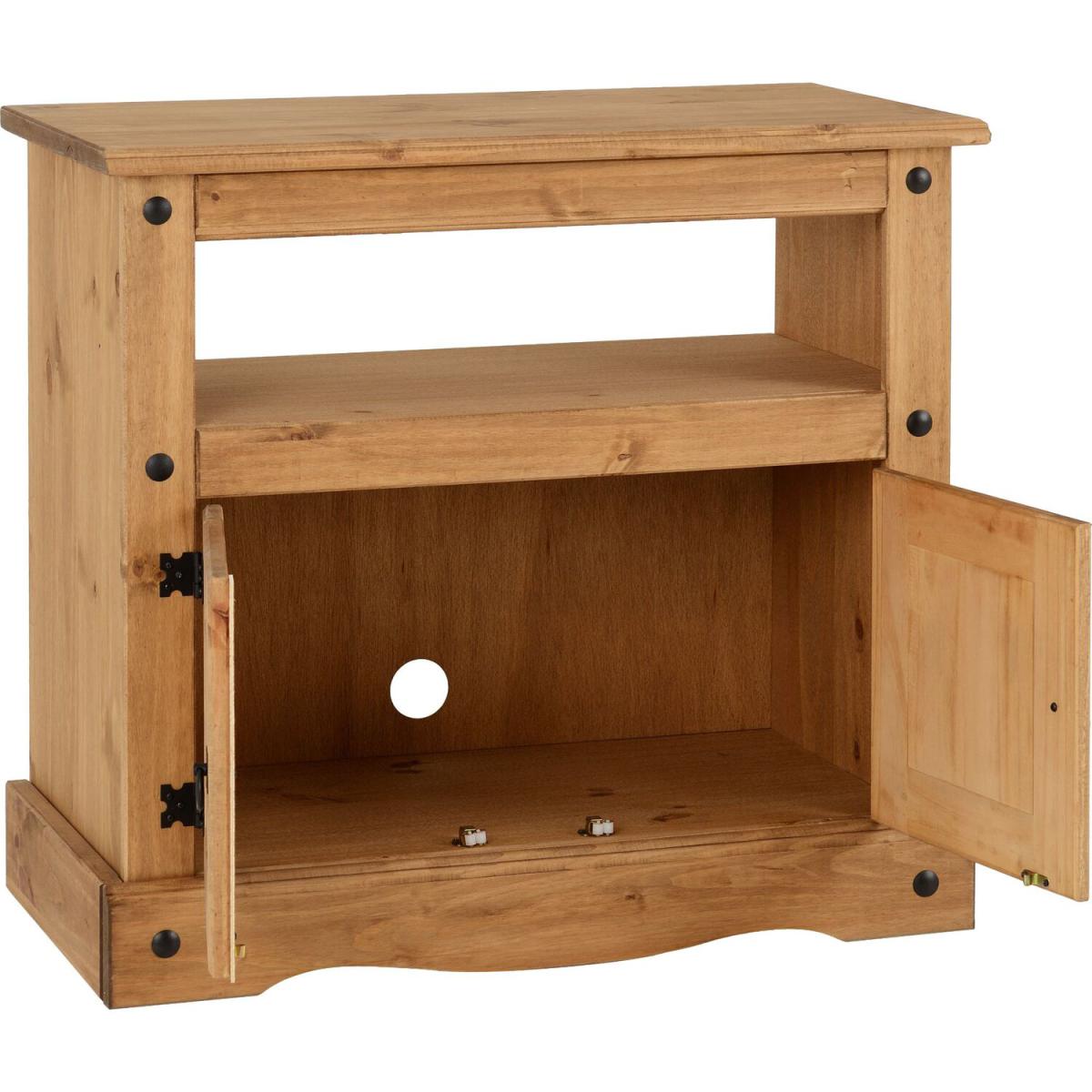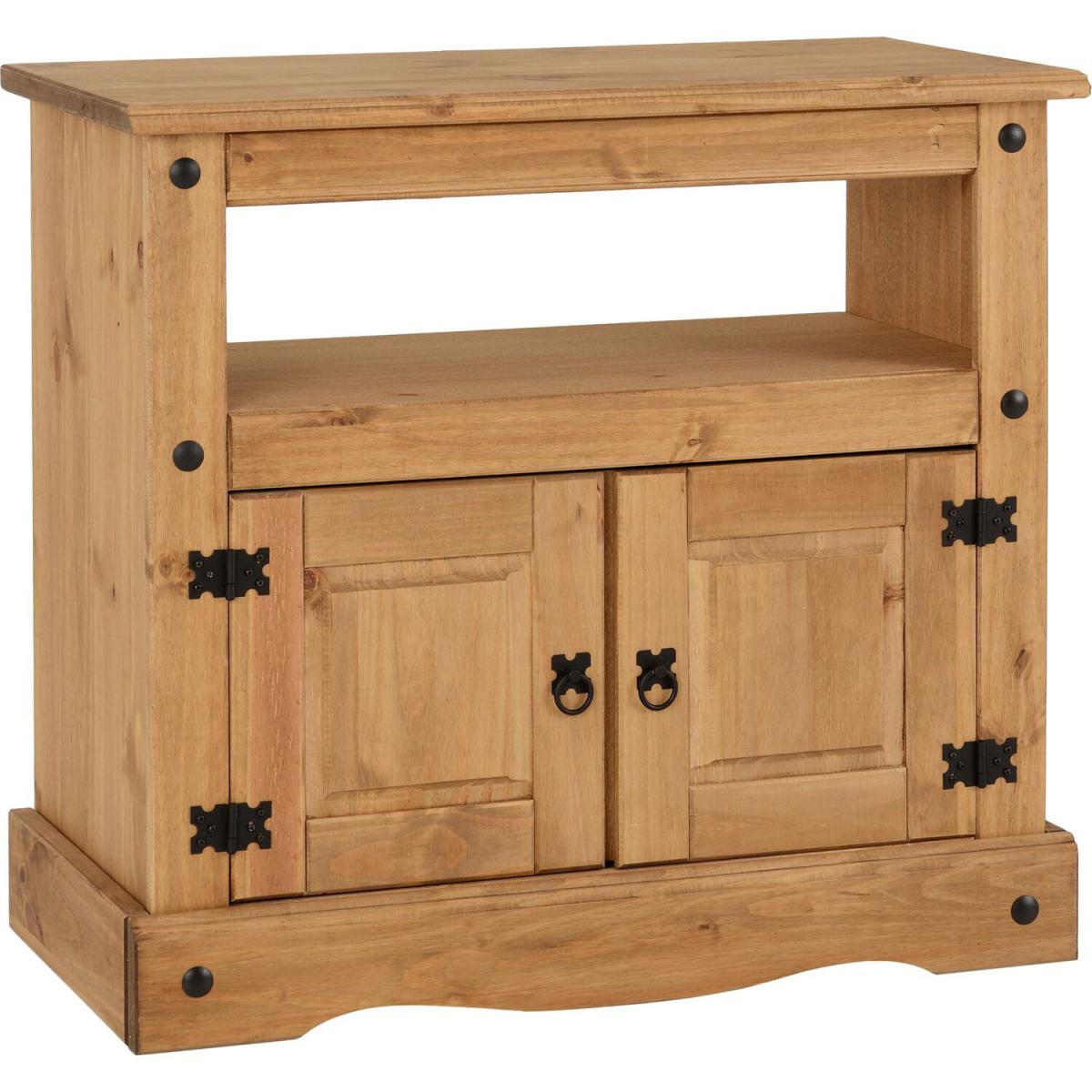 With its distressed, waxed pine finish and iron effect handles, The Corona TV stand would be a welcome addition to any living space.