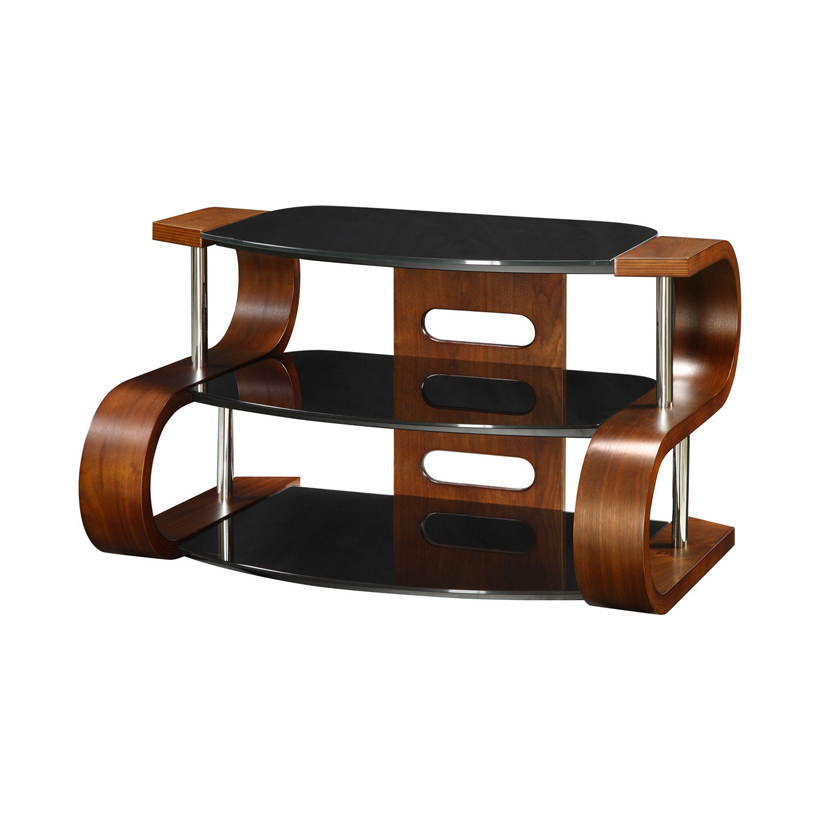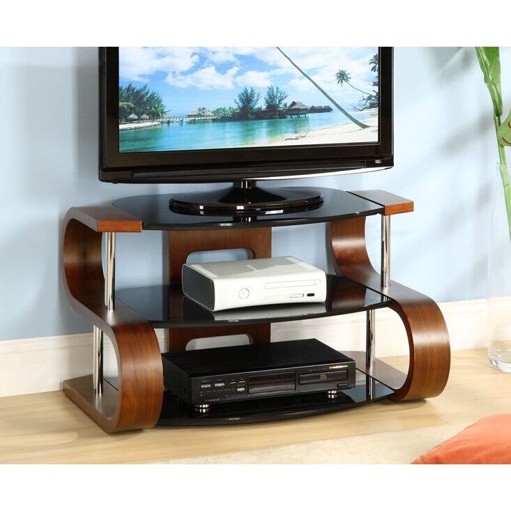 A unique fusion of contemporary design and everyday practicality, the Corsair Walnut 85cm S TV Stand is an outstanding addition to any living space. The TV unit is an outstanding piece of home entertainment furniture and has the capacity for televisions up to 42" in size. Crafted from natural walnut veneer with chrome supports and black tempered glass, the Corsair Walnut 85cm S TV Stand is a stunning unit to display your television and accessories. Featuring a strong tempered glass surface and shelves, the Corsair Walnut 85cm S TV Stand is complete with an integrated cable management system that allows for discreet wiring. Further Items in the Collection:Corsair Walnut Sideboard, Corsair Walnut Coffee Table, Corsair Walnut Oval Lamp Table, Corsair Walnut Bookcase and Corsair Walnut Cantilever TV Stand.