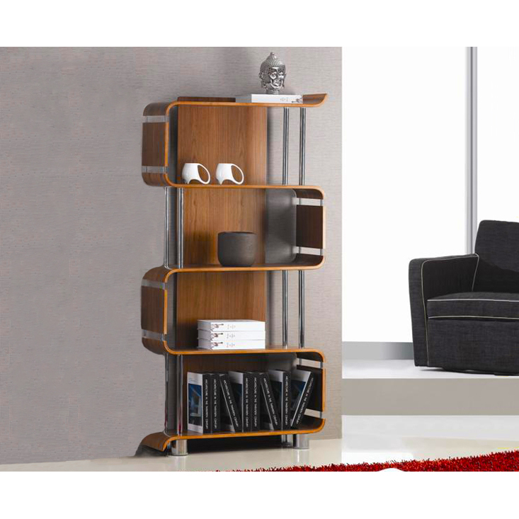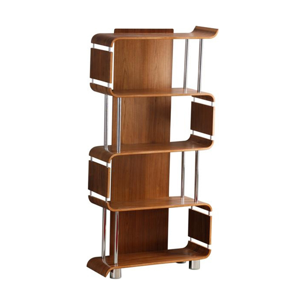 Outstanding contemporary design and impressive craftsmanship combine to make the Corsair Walnut Bookcase a beautiful addition to any home. A stunning fusion of smooth curves and sleek metal, this unique bookshelf displays your books, photographs and ornaments in style. Crafted with rich natural walnut veneers and supported by gleaming chrome supports, the Corsair Walnut Bookshelf is an outstanding piece of furniture that enhances any space and provides versatile storage. The bookshelf is complete with a wood back panel that maximises the stability and strength of the piece. Further Items in the Collection: Corsair Walnut Sideboard, Corsair Walnut Coffee Table, Corsair Walnut Oval Lamp Table, Corsair Walnut 85cm S TV Stand and Corsair Walnut Cantilever TV Stand.