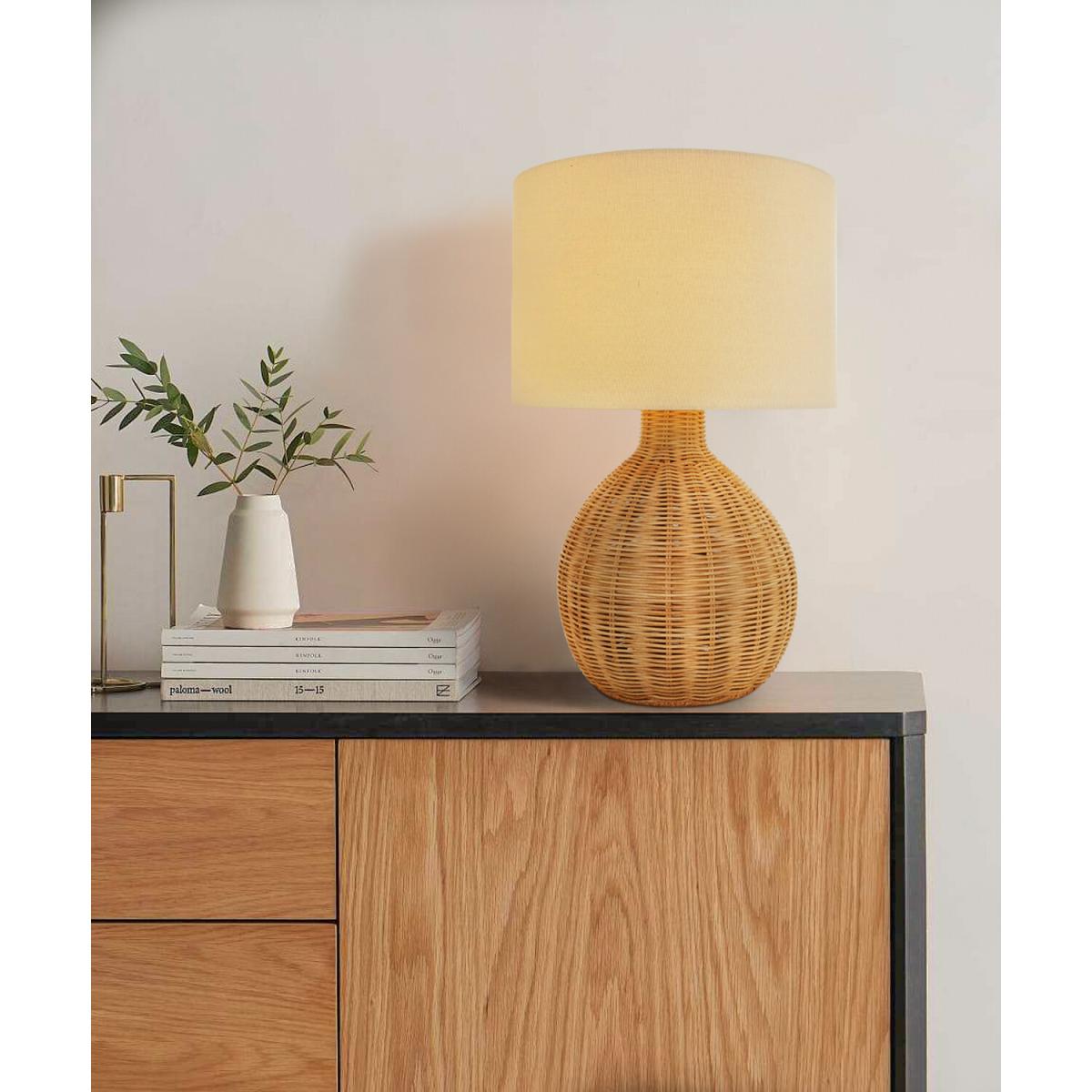 I love this lamp for its warm, natural aesthetic-its rattan base adds texture and a touch of organic charm. It works beautifully in both contemporary and boho-inspired interiors, especially in living rooms or bedroom bedside tables. For styling tips, try pairing it with neutral textiles or wooden accents to enhance its earthy vibe. Practical positioning includes placing it on a side table or console to create a cosy, inviting glow without overpowering the space. It’s a versatile piece that pairs well with other natural materials and can elevate the overall warmth and comfort of your room.