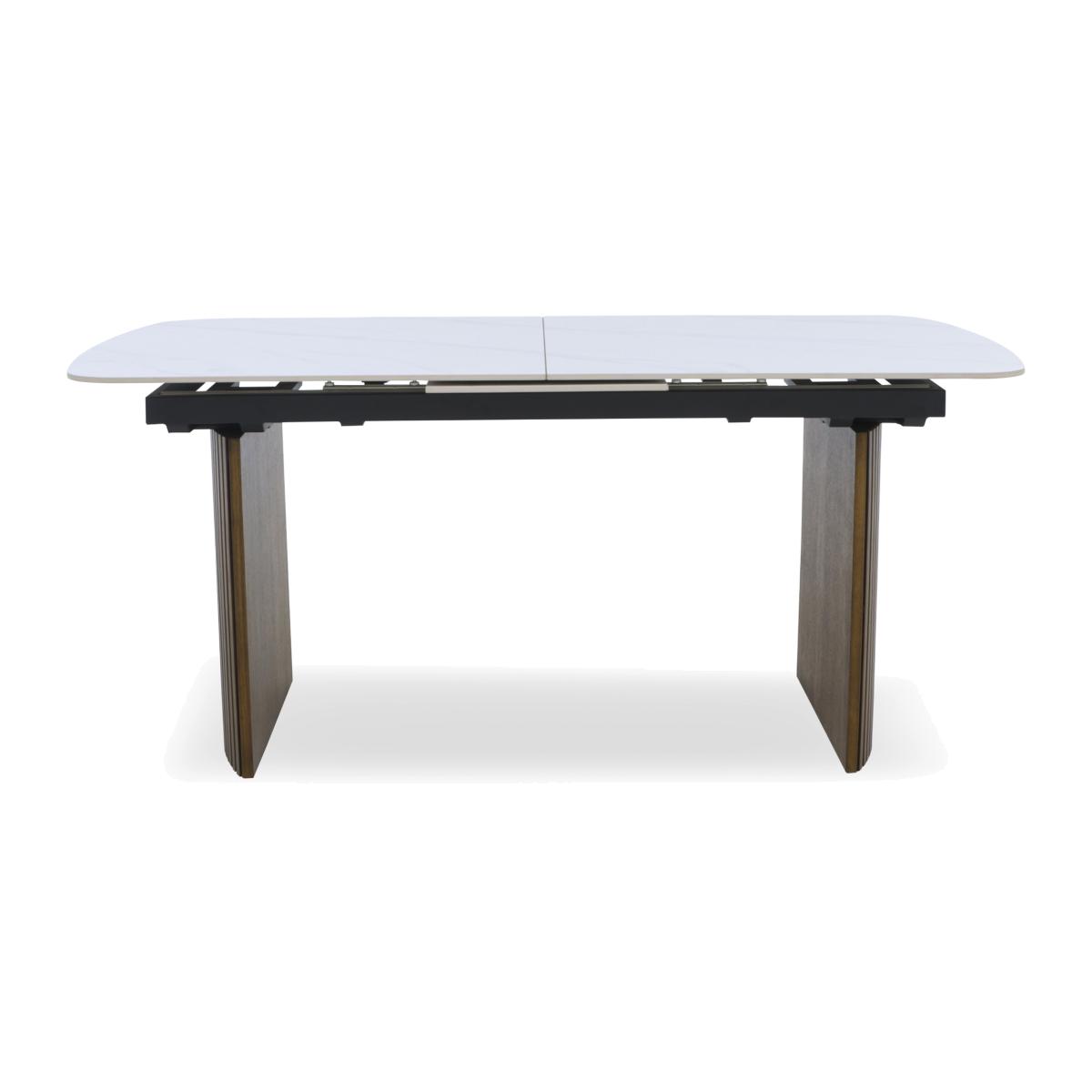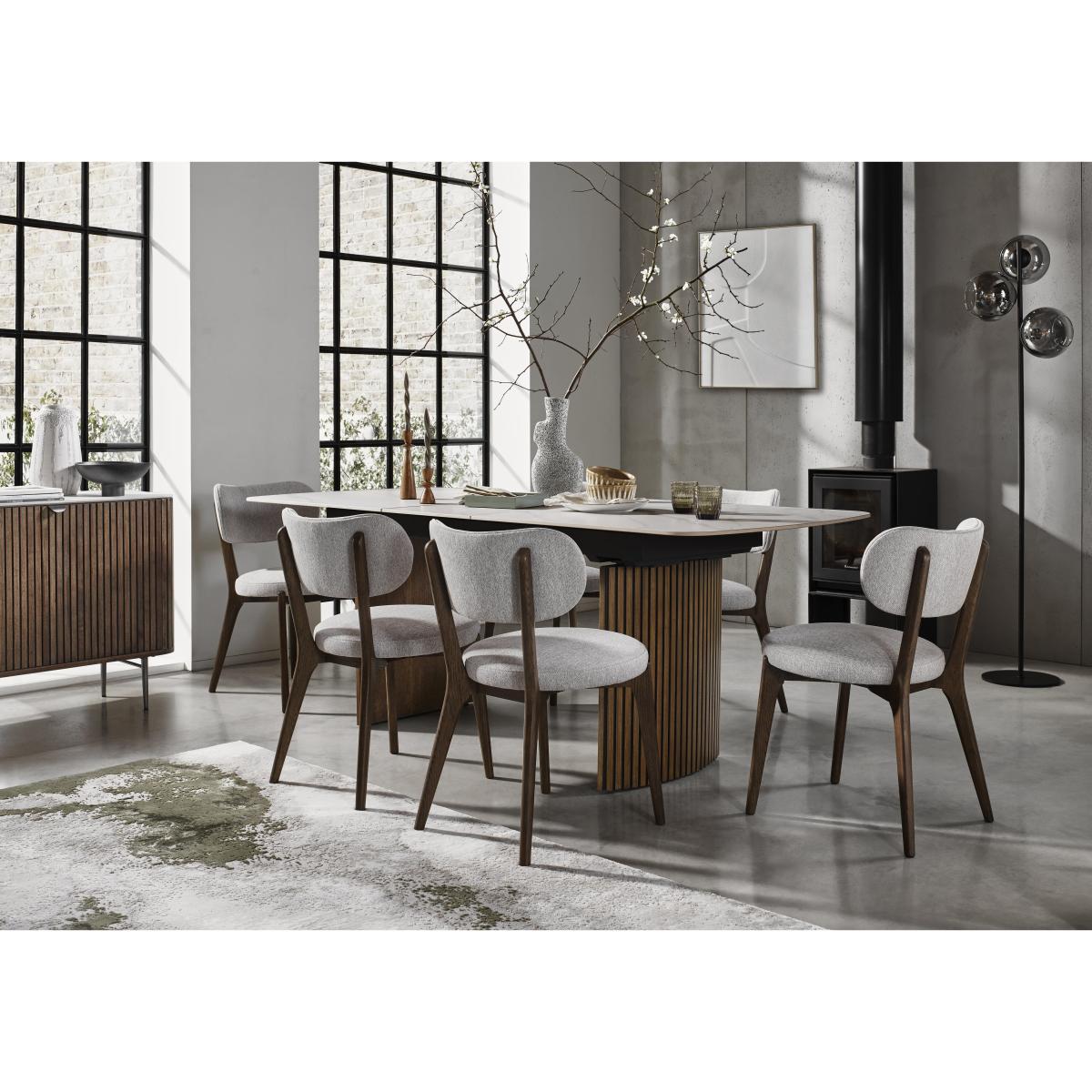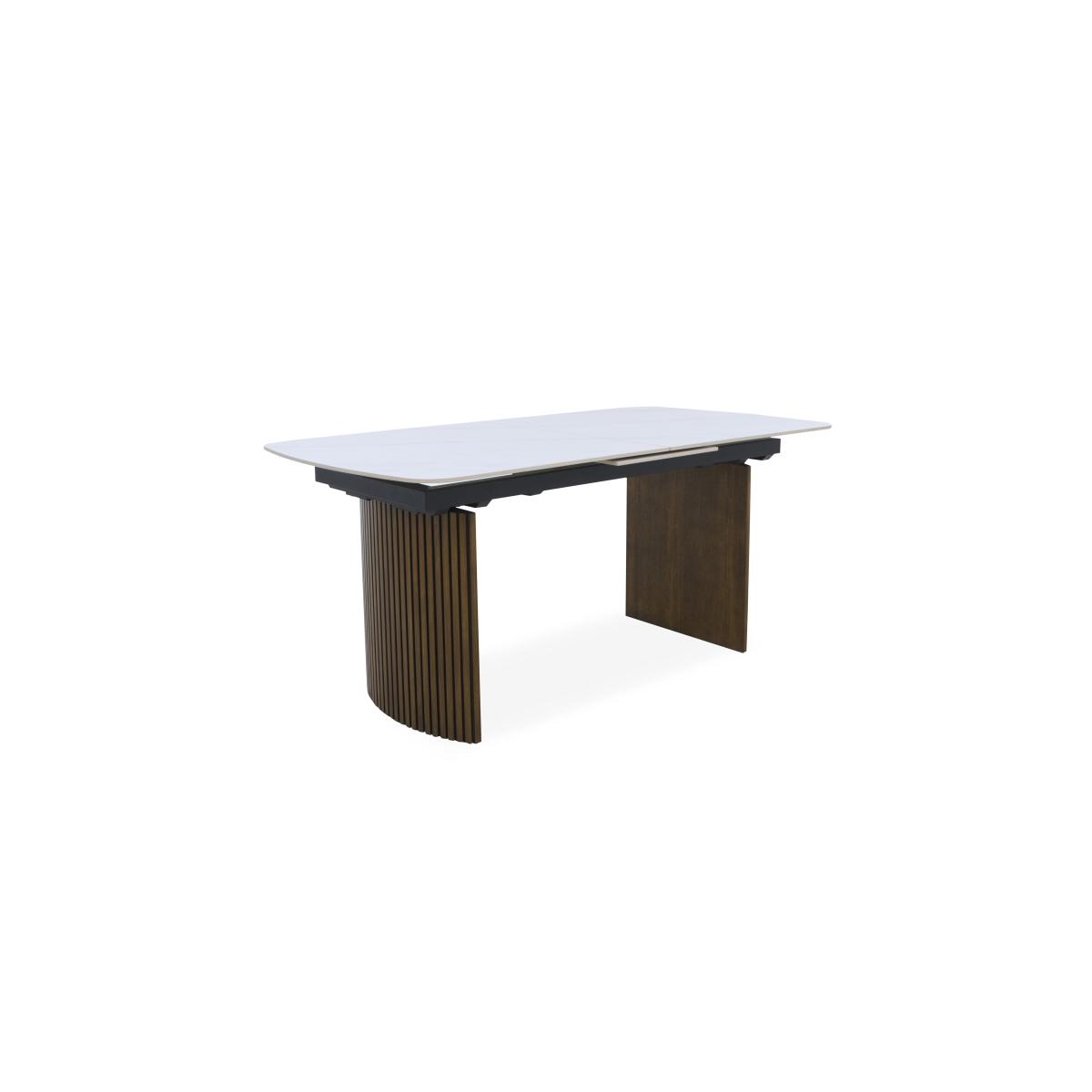 Excellence in design is evident from top to bottom of the Cortado extending dining table. With its matt ceramic surface, unique fluted leg design and smooth pop-up mechanism, it’s sophisticated and elegant. Why you'll love it A stylish mix of ceramic and wood creates a naturally sophisticated look. This stunning boat-shaped extending dining table has graceful curved ends. Gorgeous ceramic table top has an understated matt finish. It’s matched only by the distinctive curved and fluted base in solid ash and ash veneer. Super-easy pop-up extension mechanism – gently pull on the table ends and the extra leaf pops up. And it’s just as easy to maintain – ceramic is heatproof, scratch-resistant and chip-resistant. Arrives fully assembled. This extending dining table is part of the Cortado range. What you need to know 170 cm dining table seats up to 6 closed and extends to 210 cm to seat up to 8. We recommend using coasters and placemats at all times. Easy to care for. Simply wipe with a clean damp cloth.