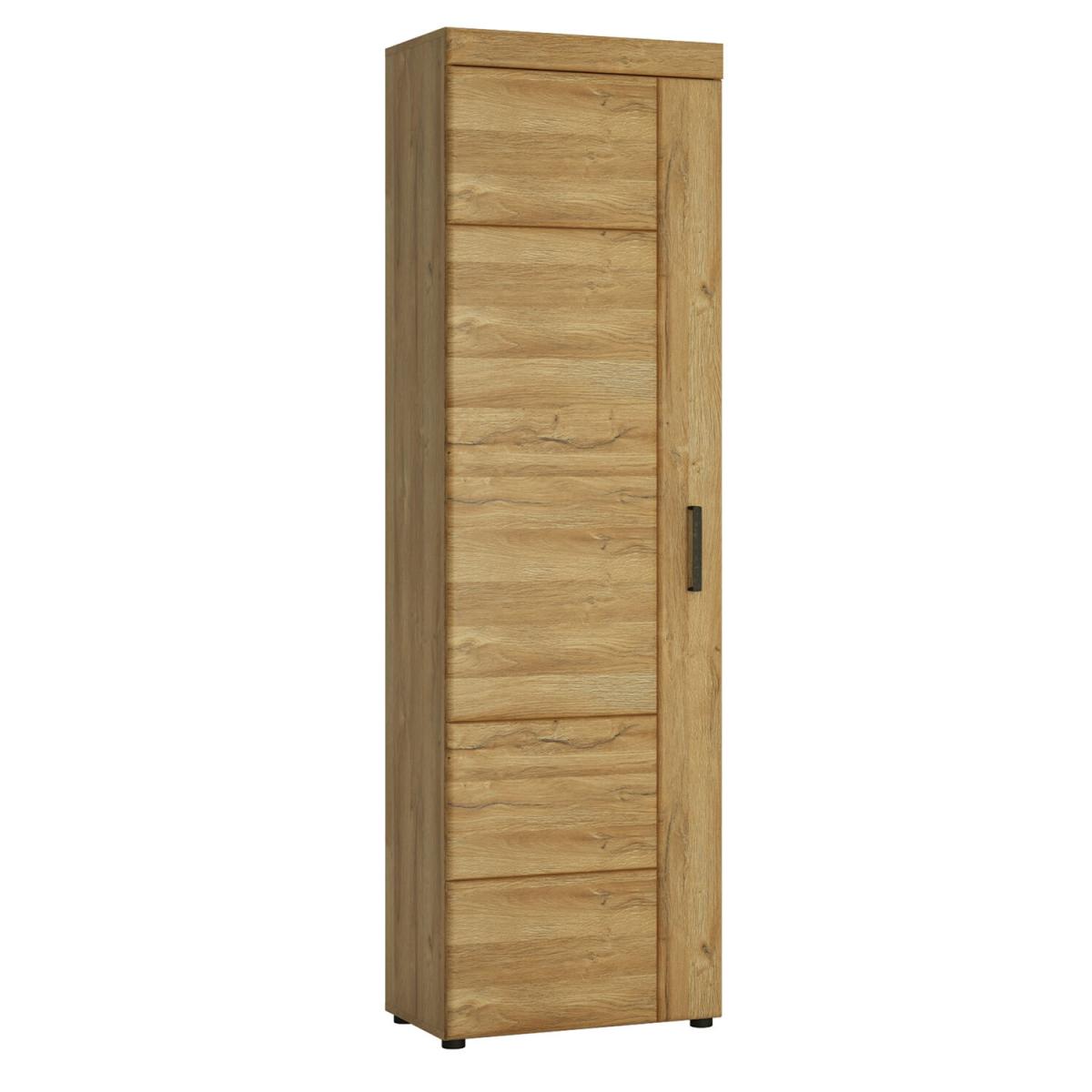The Cortina Tall Cupboard is a practical piece of furniture that's perfect for storage in any room with 5 internal shelves to help you organise and store items. For lovers of natural wood, this cabinet offers you the opportunity to enjoy the charm of wooden furniture that's made from high-quality MDF in the colour of grandson oak, which looks just like natural timber. An additional feature is the beautiful antique metal handles which give a timeless elegance to the collection.
