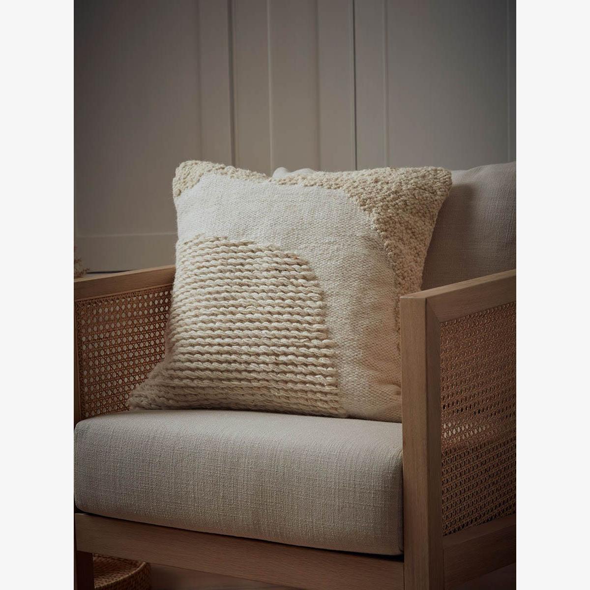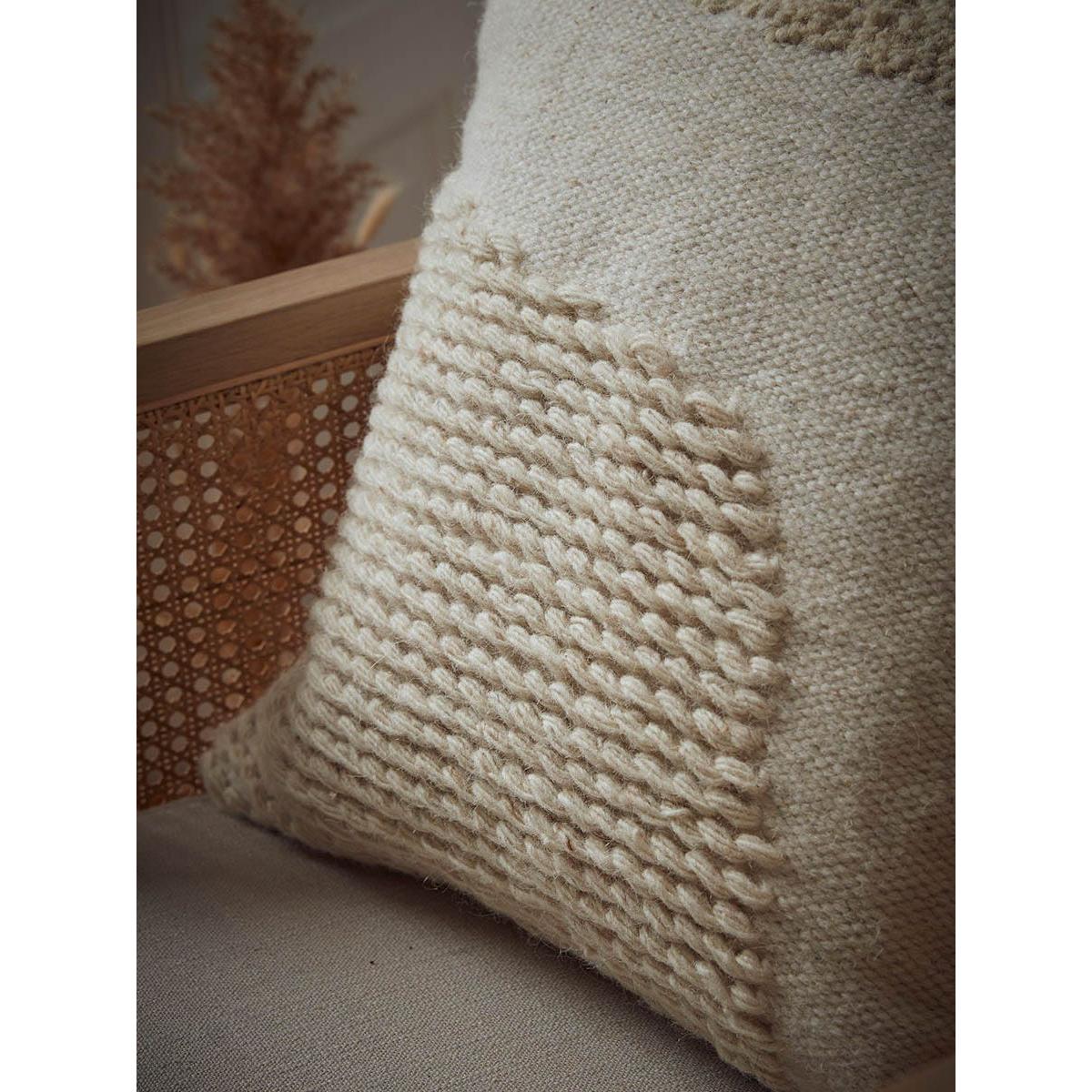 Fill your home with textural delight with our Cortine Cushion Cover. Rope style weaving and delicate tufting sit on opposing sides of this cover to create a soft curved shape in the middle. Crafted from wool, this cushion is luxuriously soft to the touch and perfect for layering on your sofa or bed, for a comfy and cosy setting. This cushion cover is suitable for a 45 x 45cm cushion pad which is available separately.