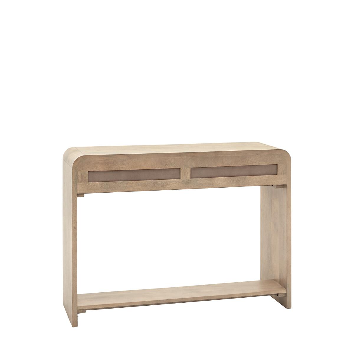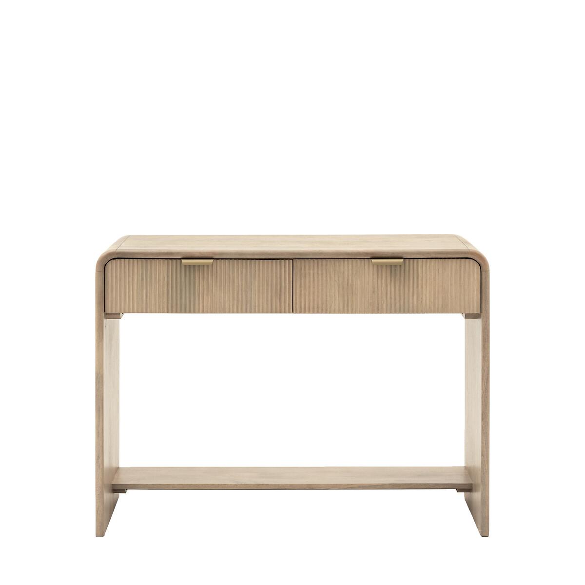 This 2 drawer console offers a sophisticated storage solution with its curved top and fluted drawer fronts. Ideal for entryways or living rooms, this console provides ample surface space for décor items while the two drawers offer convenient storage for small essentials. Product Details• Mango wood• Brass handles• Delivered fully assembled• Care advice - Wipe clean with a cloth• 12 months manufacturers warranty. Product Composition - Mango Wood / Brass. Product Dimensions - 110 cm x 38 cm x 80 cm, Weight - 30.82 KG Internal Drawer Size - 25 cm x 58 cm x 7 cm Package Dimensions - 118 cm x 89 cm x 45 cm, Weight 41.26 KG This product will be dispatched by one of our trusted suppliers. You’ll be contacted by their selected courier about your delivery. Please note: this product cannot be delivered to all Offshore Islands, Northern Ireland or Republic of Ireland.