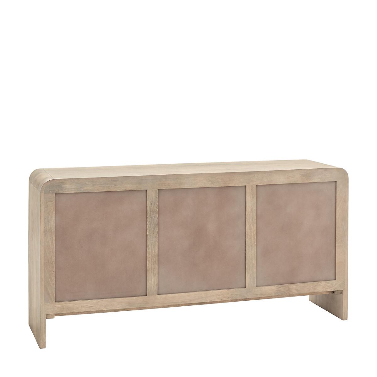 This 3 door sideboard is designed to bring both style and storage to any dining room or living space. With a beautifully curved top and signature fluted doors, this piece provides generous storage space behind its three doors. Whether used for dinnerware, media storage, or other household items, the sideboard’s refined design complements a wide range of interior styles. Product Details• Mango wood• Brass handles• Adjustable shelves• Delivered fully assembled• Care advice - Wipe clean with a cloth• 12 months manufacturers warranty. Product Composition - Mango Wood / Brass. Product Dimensions - 150 cm x 40 cm x 75 cm, Weight - 50.29 KG Internal Cupboard Size - 89.5 cm x 34 cm x 56 cm Clearance to floor - 15 cm Package Dimensions - 159 cm x 85 cm x 50 cm, Weight 62.68 KG This product will be dispatched by one of our trusted suppliers. You’ll be contacted by their selected courier about your delivery. Please note: this product cannot be delivered to all Offshore Islands, Northern Ireland or Republic of Ireland.