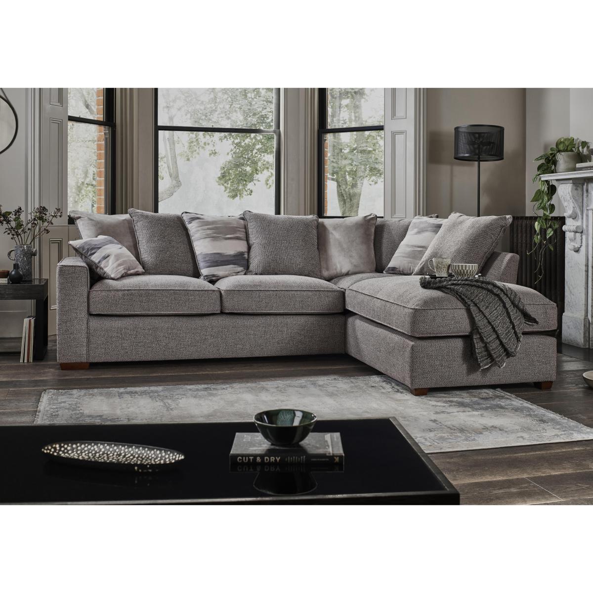 Lounge-worthy comfort is yours with the Cory range. A big hug in sofa form, this contemporary range boasts comfy seats and even comfier cushions. Unwind with your favourite book or boxset and experience the softness of woven chenille fabric and the support of foam interiors. There are even sofa bed designs that let you make the most of your space – including a cosy chair bed. It’s available in a wide range of colours and sizes with modular configurations available too so you can customize it to your space. Designed to be the ultimate chill spot for all the family, the Cory range delivers chic good looks and incredible comfort in one. Looking for a sofa the whole family can chill out on? The Cory corner chaise sofa brings together casual comfort and modern design with super-comfy seats you’ll all love relaxing on. Why you'll love it. A modern yet casual corner chaise scatter back sofa. Designed to be the ultimate chill space for all the family. Comfy, supportive seats you can enjoy all day long. 8 scatter cushions filled with fibre for sink-in softness. Upholstered in woven chenille for a plush feel. The foam seats keep their shape, so your sofa stays looking new. Stylish dark wood feet. Modular options available. Upgrade to FoamFlex interiors. Fibre-like comfort that keeps its shape, with a 5-year guarantee. Handmade in the UK. Exclusive to Furniture Village. What you need to know. Medium comfort level. Seat suspension: Serpentine springs. Seat cushions: Foam with fibre topper. Back cushions: Blown fibre. Some fabrics can show wear on areas of more use or in direct sunlight. Please read our upholstery care guide for more advice. Part of the Cory range.