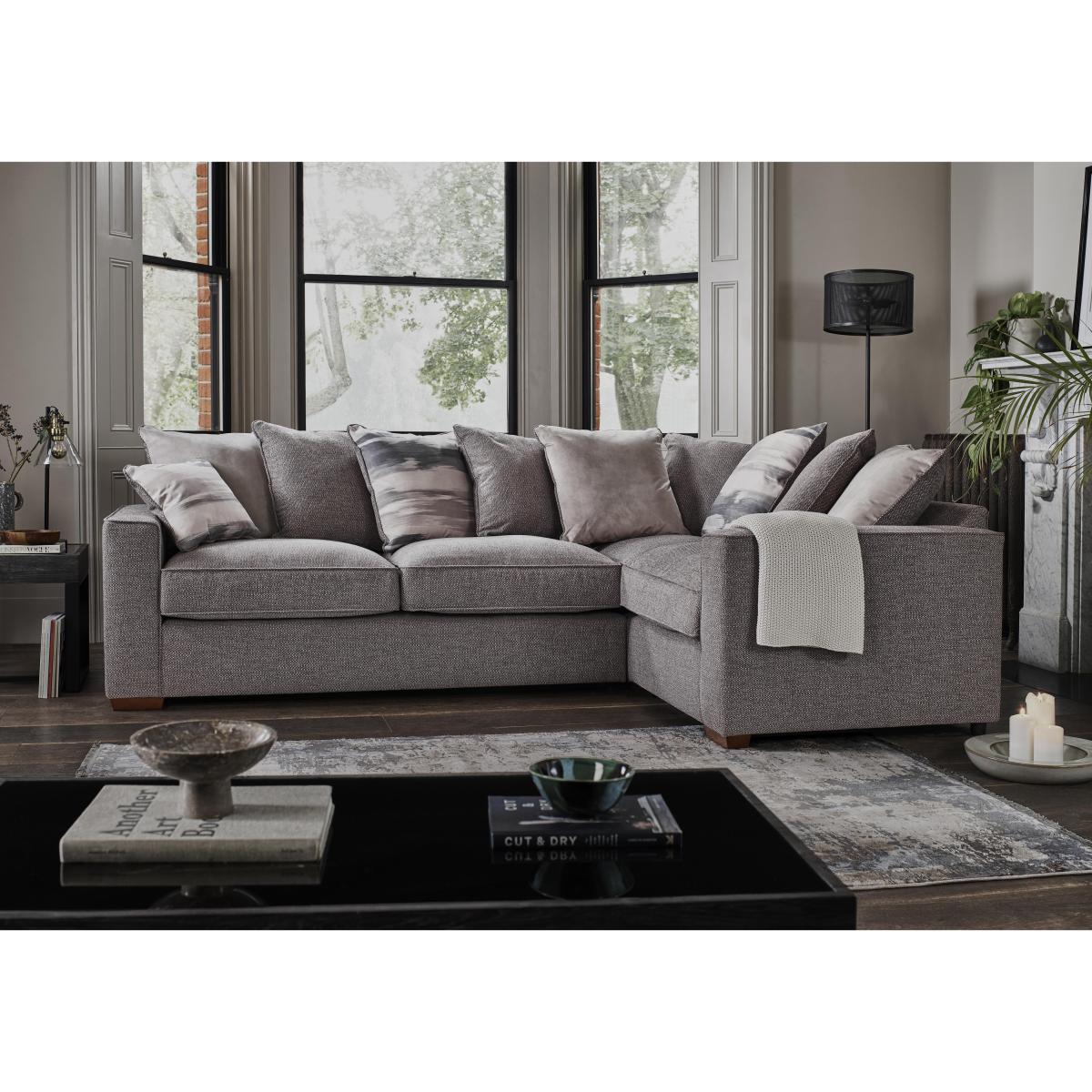 Lounge-worthy comfort is yours with the Cory range. A big hug in sofa form, this contemporary range boasts comfy seats and even comfier cushions. Unwind with your favourite book or boxset and experience the softness of woven chenille fabric and the support of foam interiors. There are even sofa bed designs that let you make the most of your space – including a cosy chair bed. It’s available in a wide range of colours and sizes with modular configurations available too so you can customize it to your space. Designed to be the ultimate chill spot for all the family, the Cory range delivers chic good looks and incredible comfort in one. Modern and cosy, the Cory small corner sofa is everything you need to relax in total comfort. Super-comfy sprung seats and space to stretch out all in a soft woven chenille. Why you'll love it. A modern yet casual small corner scatter back sofa. Designed to be the ultimate chill space for all the family. Comfy, supportive seats you can enjoy all day long. 9 scatter cushions filled with fibre for sink-in softness. Upholstered in woven chenille for a plush feel. The foam seats keep their shape, so your sofa stays looking new. Stylish dark wood feet. Modular options available. Upgrade to FoamFlex interiors. Fibre-like comfort that keeps its shape, with a 5-year guarantee. Handmade in the UK. Exclusive to Furniture Village. What you need to know. Medium comfort level. Seat suspension: Serpentine springs. Seat cushions: Foam with fibre topper. Back cushions: Blown fibre. Some fabrics can show wear on areas of more use or in direct sunlight. Please read our upholstery care guide for more advice. Part of the Cory range.