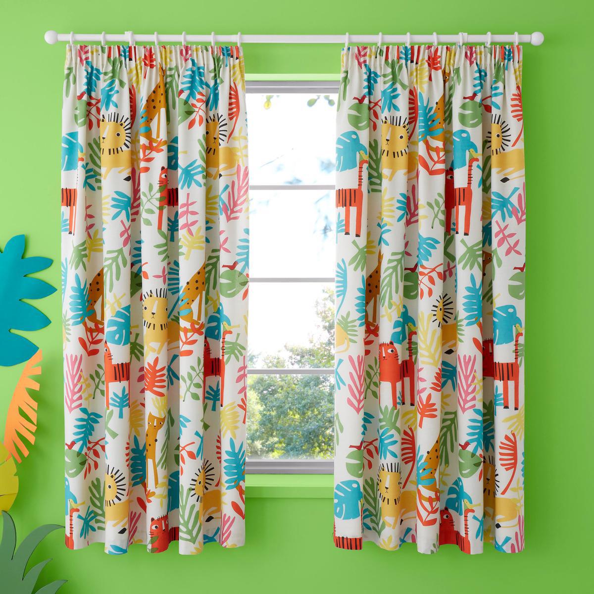 I love this tiger tropics curtain for its vibrant, playful design that’s perfect for bringing a lively feel to a child's room. The multicoloured pattern works well in neutral or white interiors, adding a splash of fun without overwhelming other decor. It’s a practical choice for a nursery or child's space, offering a cheerful, unisex theme. To style it, consider pairing with simple, solid-coloured furniture to let the curtains be the focal point, and maybe add a few matching accessories like cushions or rugs to enhance the tropical vibe. These curtains are a great way to introduce colour and character while keeping the space versatile and easy to update as your child grows.