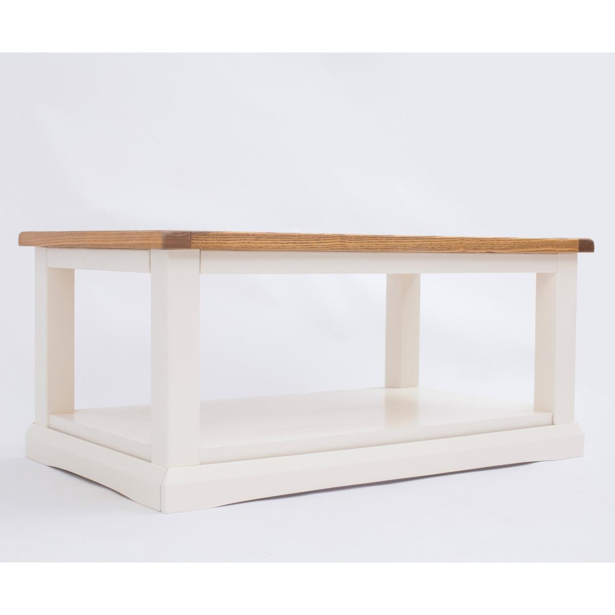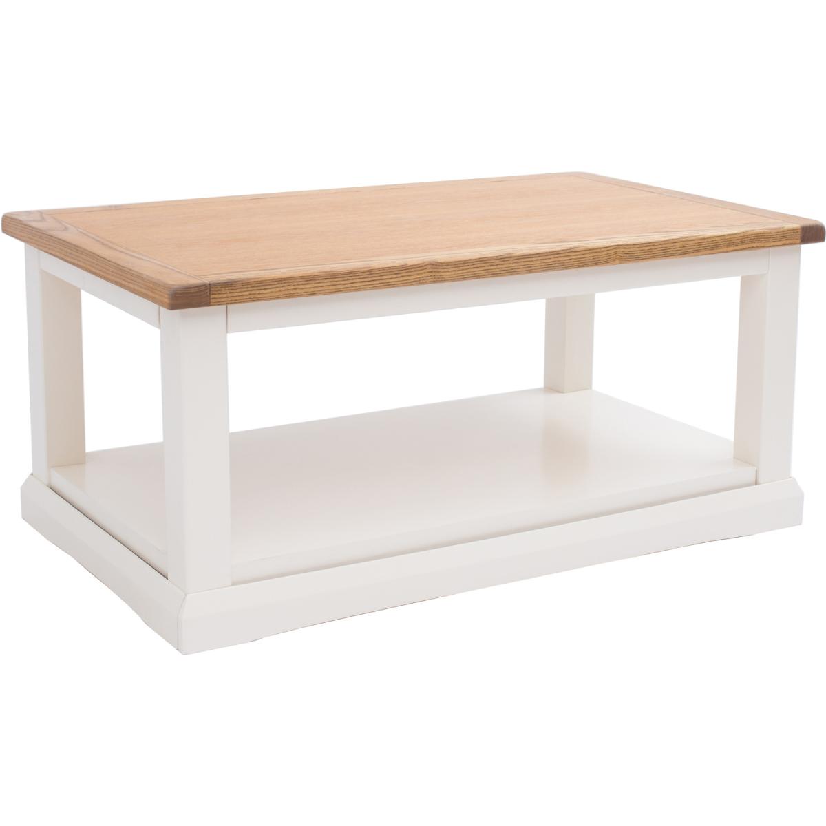 Our Cosenza collection has a simple but pleasing design and is produced by our skilled craftsmen to the highest standards using responsibly sourced wood and veneers. All tops are made using a combination of hardwood and ash veneer and are carefully hand waxed giving it a great look. The body is finished with a high quality eco-friendly water base paint in an off-white colour. This coffee table is perfect as a centrepiece for your room. The top has plenty of space for TV remotes, magazines, your tablet or your favourite scented candle. It is also perfect for drinks and snacks, but don't forget to use a coaster to protect the finish. The shelf below allows space for those other items you need close to hand to be stored conveniently, perhaps tissues or your snuggle blanket for cold nights. These attributes combined with a simple construction for easy assembly makes it a great value product to be taken home today.