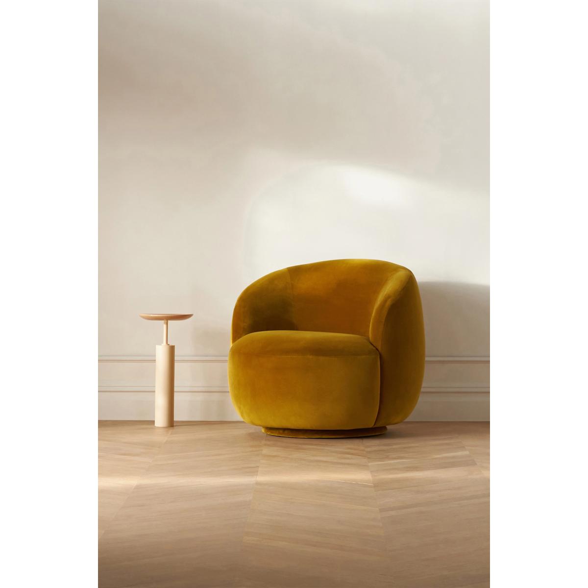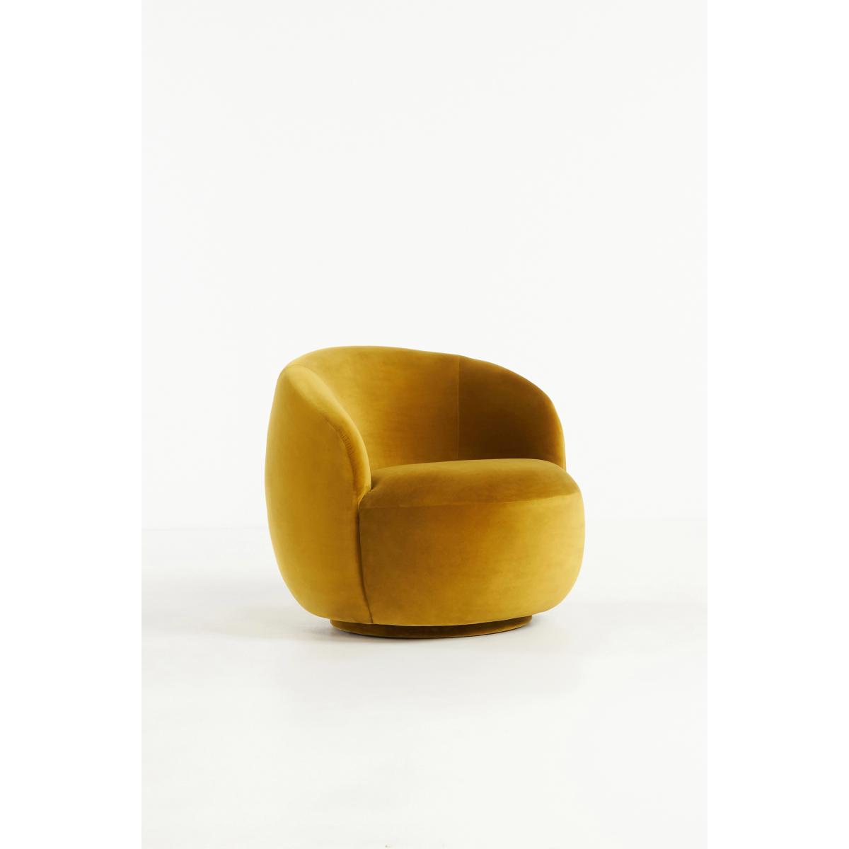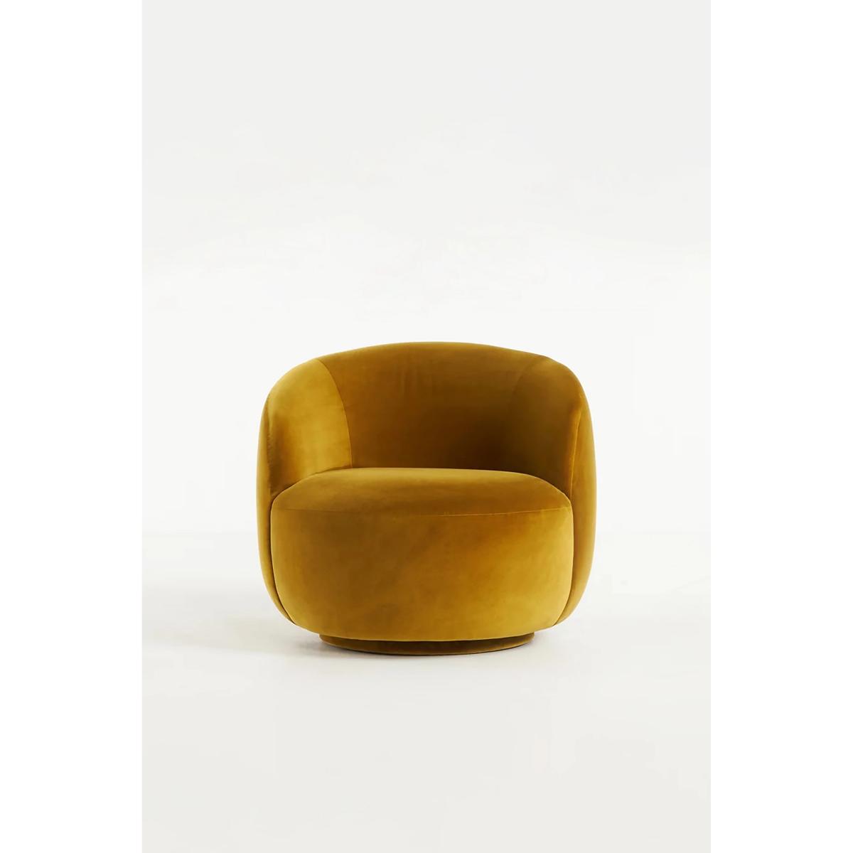 Catch the sunlight just right while reading your book with this full-turn swivel chair. The velvet upholstery adds a cozy addition to your living space that is soft to the touch. * Valencia velvet upholstery: 100% Polyester * Cushion content: Foam & Fiber * Flexolator and sinuous spring construction with full-360 metal swivel mechanism * Kiln-dried hardwood frame * Corner block joinery * This piece is intended for indoor use * Imported