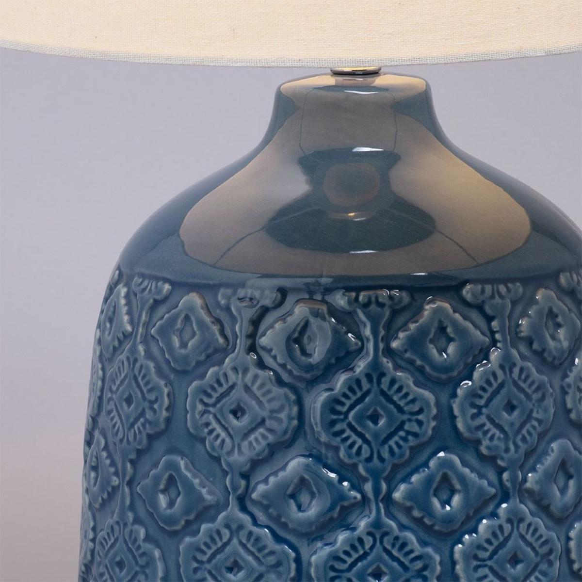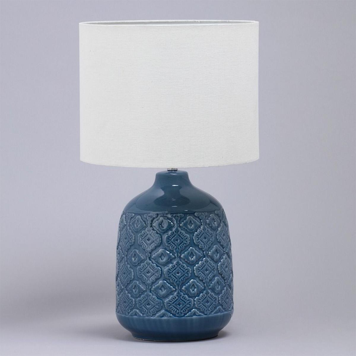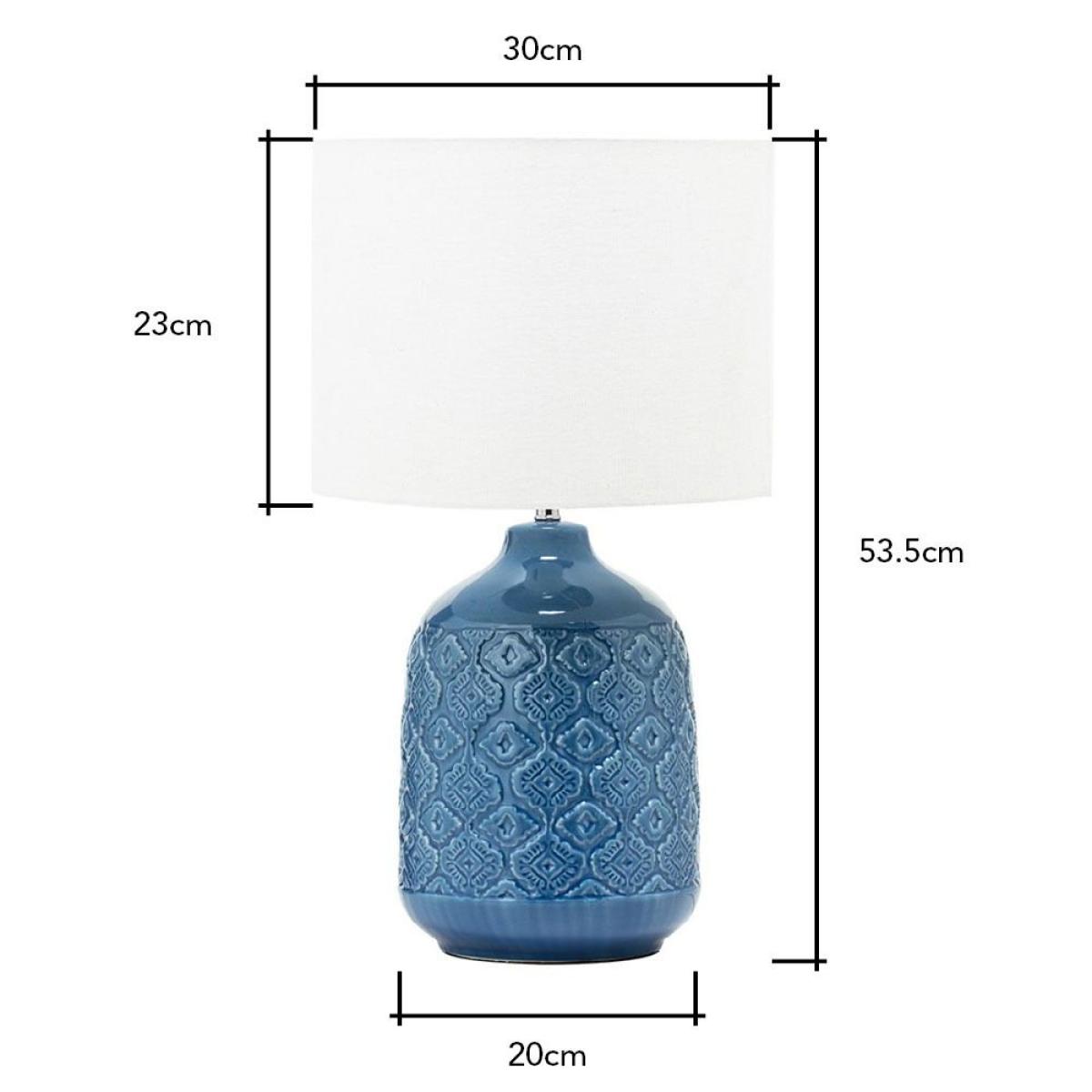 Our Cosgrove patterned ceramic table lamp in cobalt blue gives a rustic style and rich colour to any interior space, creating a homely, comforting feel. The ceramic lamp base has an intricate pattern detailing that gives depth to the designs and is finished in a unique cobalt blue colour that gives a fantastic touch of colour the decor. Cosgrove is ideal as a bedside light or as a piece to give a soft pool of illumination to your living room, with the simple white shade diffusing the light for a warmer, more relaxing glow inside of your home.