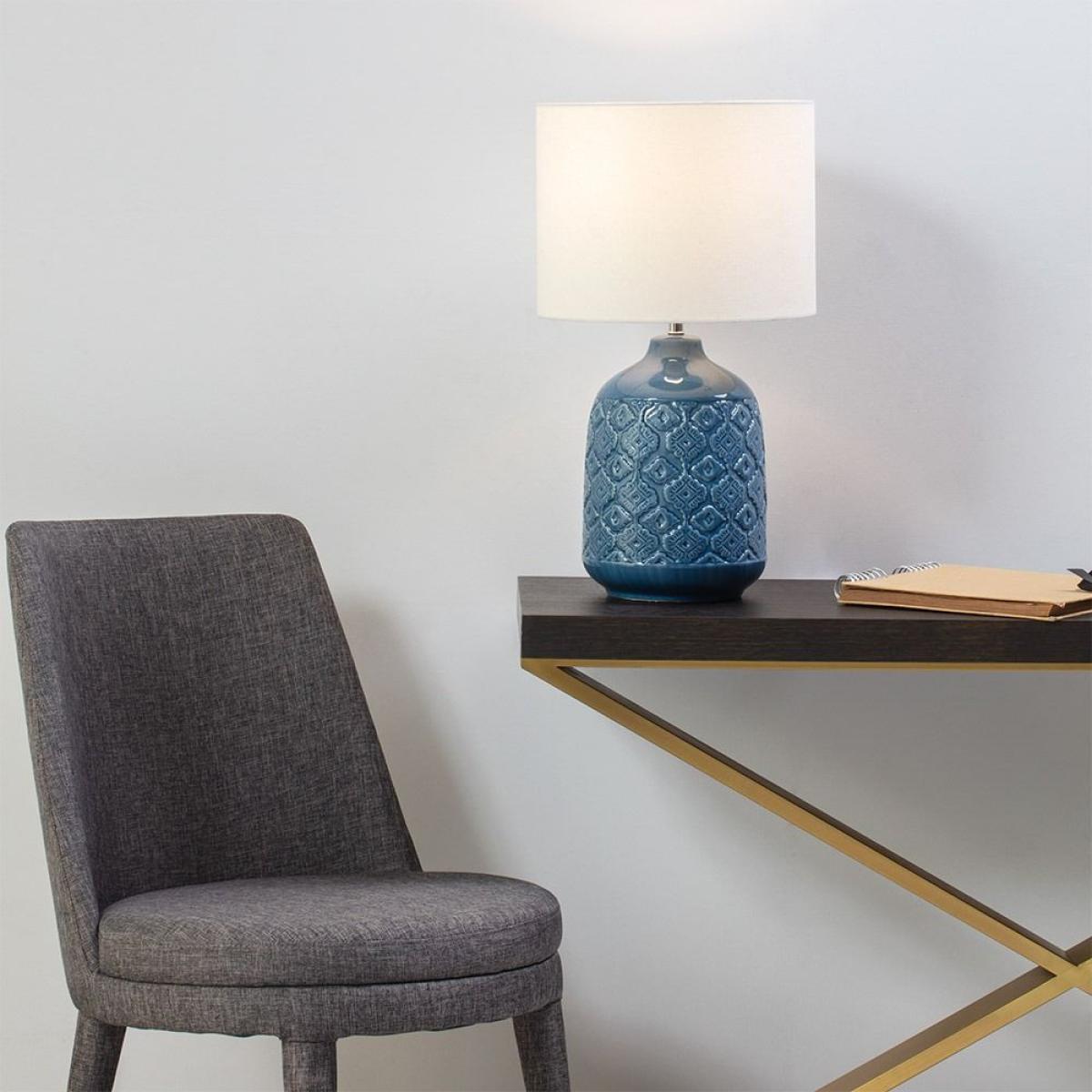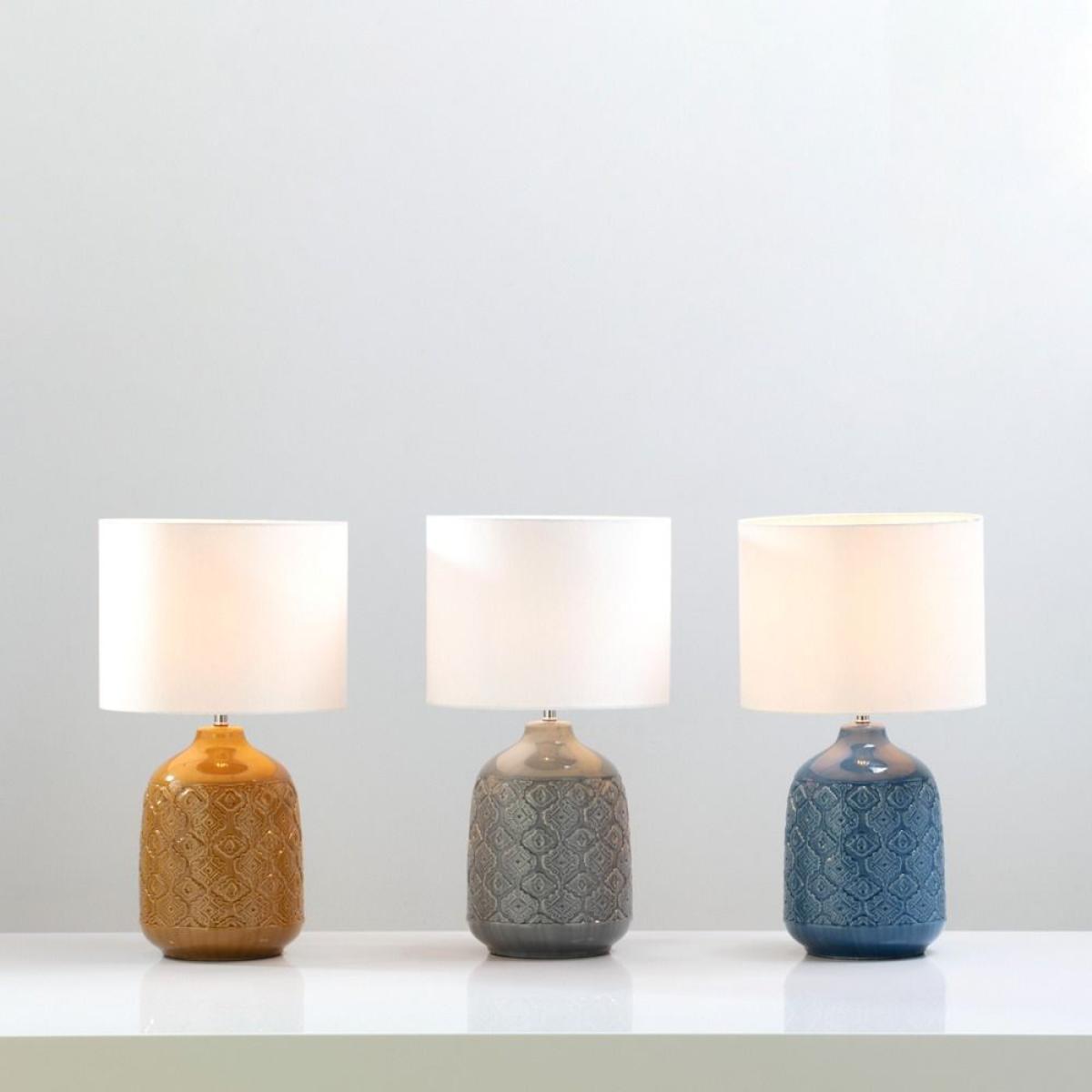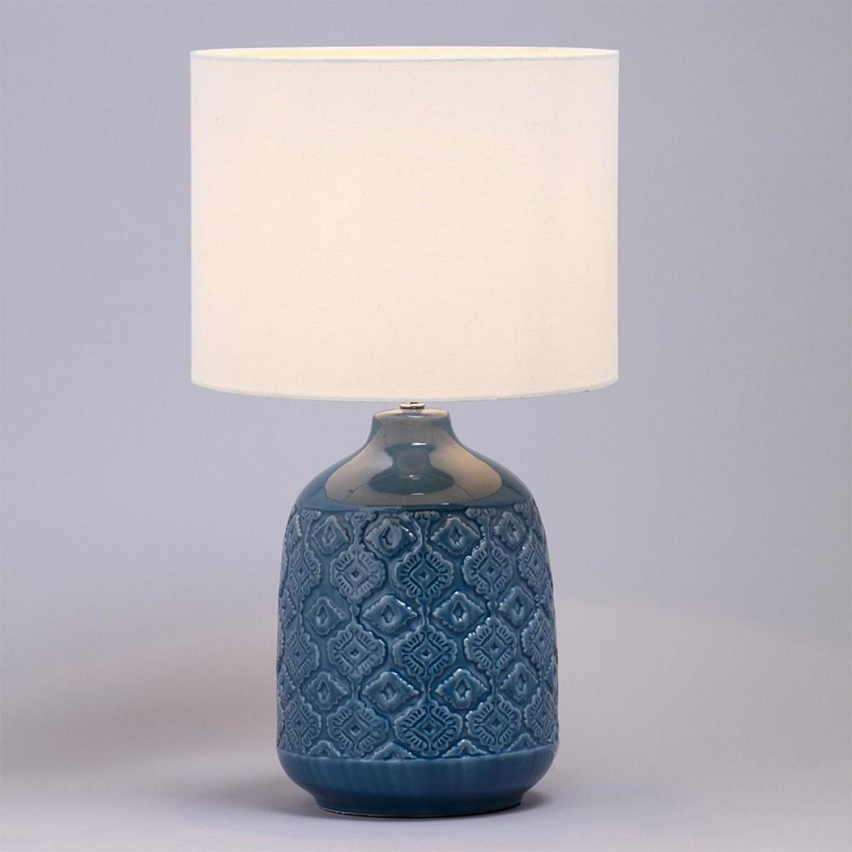 Our Cosgrove patterned ceramic table lamp in cobalt blue gives a rustic style and rich colour to any interior space, creating a homely, comforting feel. The ceramic lamp base has an intricate pattern detailing that gives depth to the designs and is finished in a unique cobalt blue colour that gives a fantastic touch of colour the decor. Cosgrove is ideal as a bedside light or as a piece to give a soft pool of illumination to your living room, with the simple white shade diffusing the light for a warmer, more relaxing glow inside of your home.