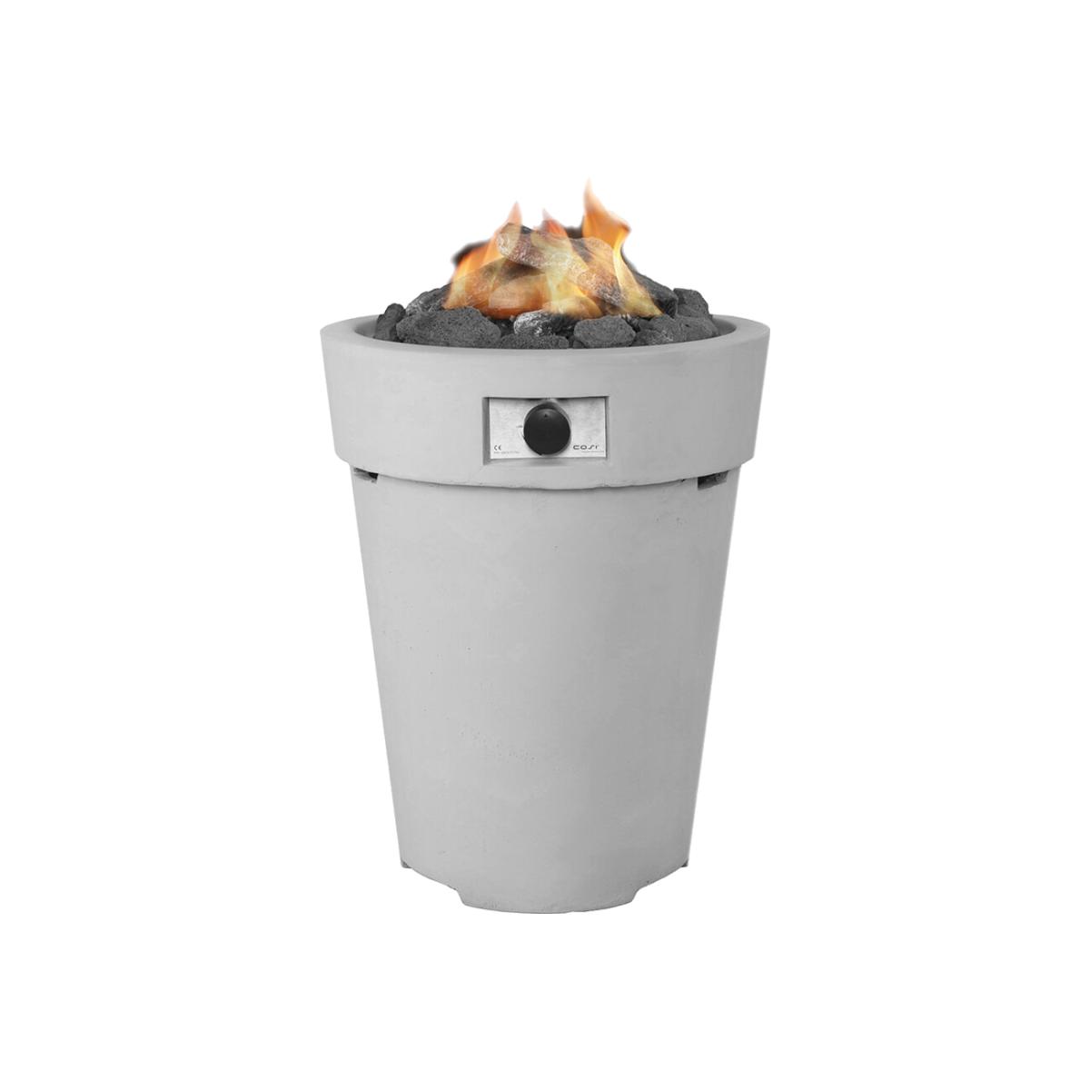 Bask in the warm glow of dancing flames with this Cosdrum 70 fire pit from Cosi. Complete with decorative rocks and lava rocks, it is finished in a smooth matt black or light grey. Big on style but little on size, this compact fire pit is perfect for any patio or garden. Pair with the Cosicube 70 glass surround and protective cover to complete the look. Key features: * Material: composite aluminium * Dimensions: Ø58xH70cm * Fuel required: propane gas * Light grey colour * Features decorative logs and lava rocks * Will fit a standard 5kg gas cylinder * Which is easy to place in a hidden compartment