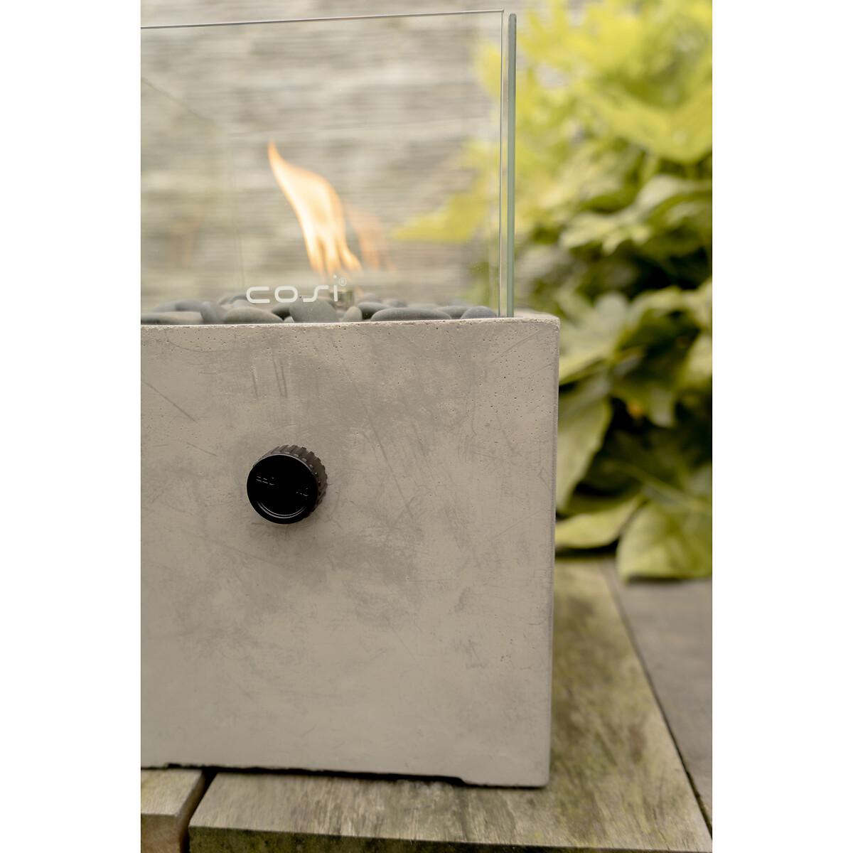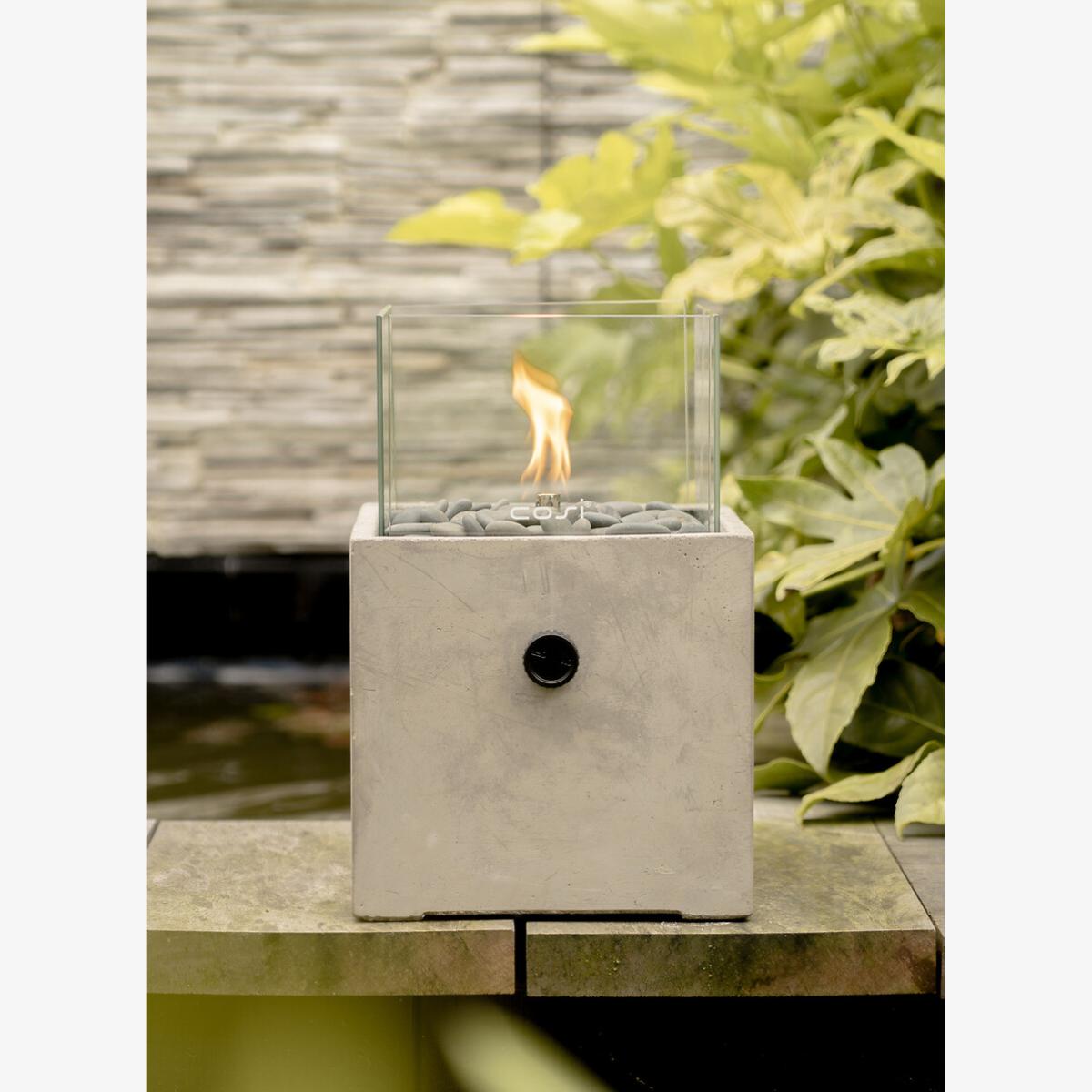 The Cosicement Square Fire lantern is a contemporary take on a classic square fire lantern. This robust and atmospheric fire lantern is a real statement piece and appeals to the minimalist with the fabulous concrete effect finish. Easy to operate and easy on the eye, this fire lantern is suitable for all outdoor spaces. This model works on a 190gram gas cartridge. To use simply twist the can under the lantern, switch on the button and light your scoop with a taper or candle lighter. The scoops all burn for around six hours. Please note the Gas Cartridge is not included.190 gram Gas Cartridge required. Product Dimensions: 20cmx20cmx30cm. Composition: Concrete 40%, Glass 40%, Steel 10%This product will be dispatched by one of our trusted suppliers. You’ll be contacted by their selected courier about your delivery. PACIF01